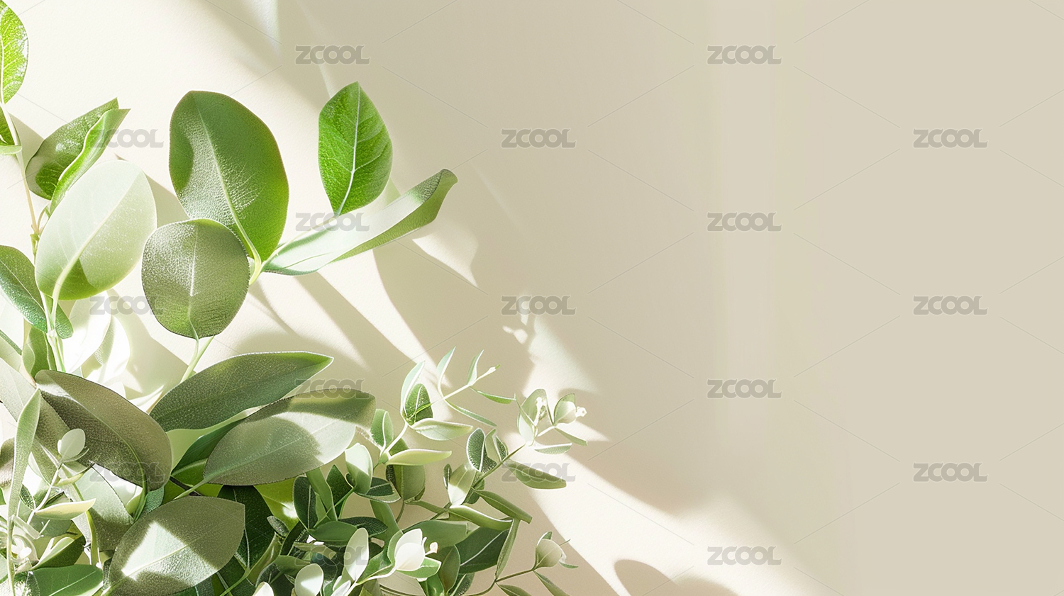 绿色植物叶子在白色背景上的光影效果