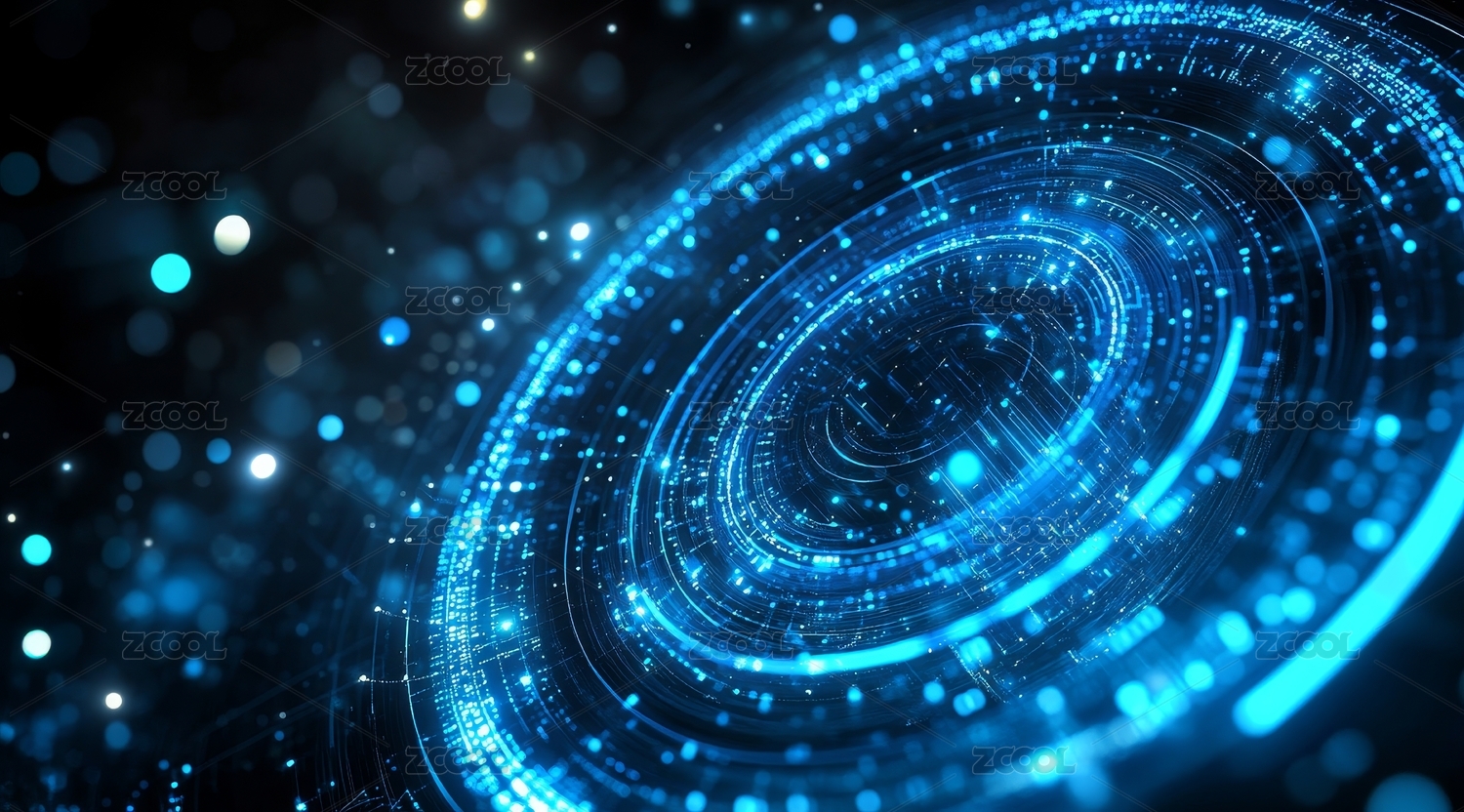 数字艺术,深色背景,蓝色光点,螺旋线,数据流,能量场,抽象艺术,科技美学,现代艺术,创意设计