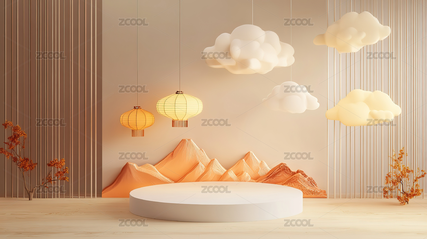 淡黄色抽象云彩电商3D展台