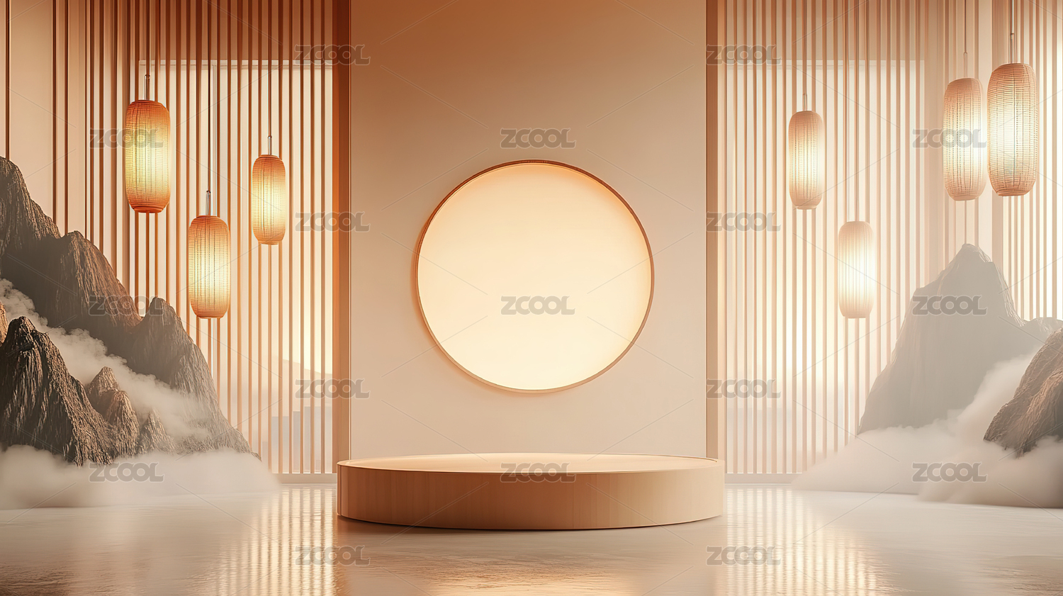 红色3D渲染中国风几何电商静物展示台