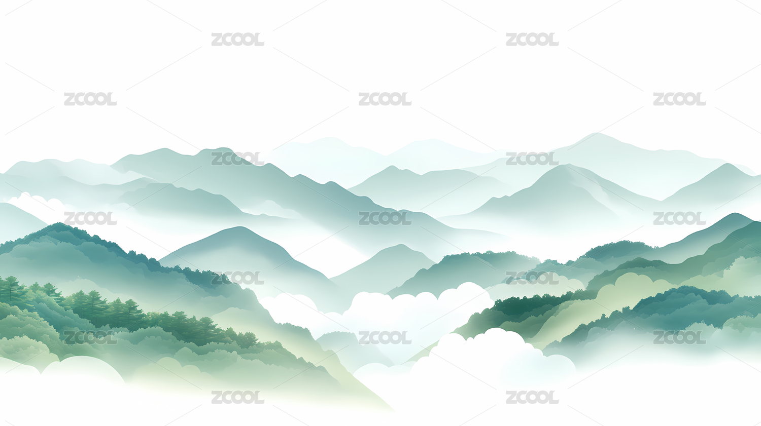 青山绿水,云雾缭绕