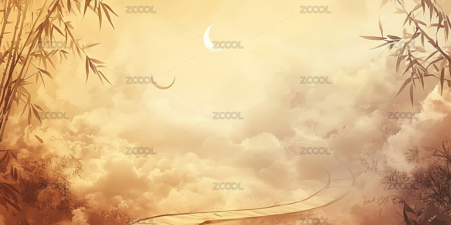 树,自然,风景,白昼,天空,水墨画,AI数字艺术,烟