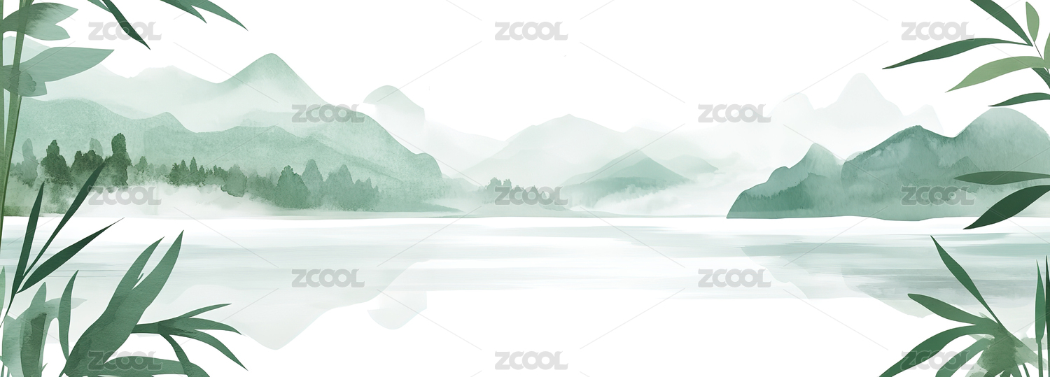 水墨山水云雾竹枝