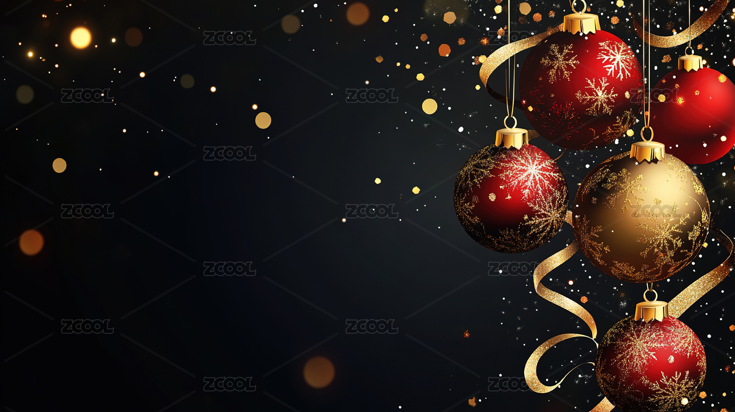 黑色背景下悬挂的圣诞装饰特写镜头