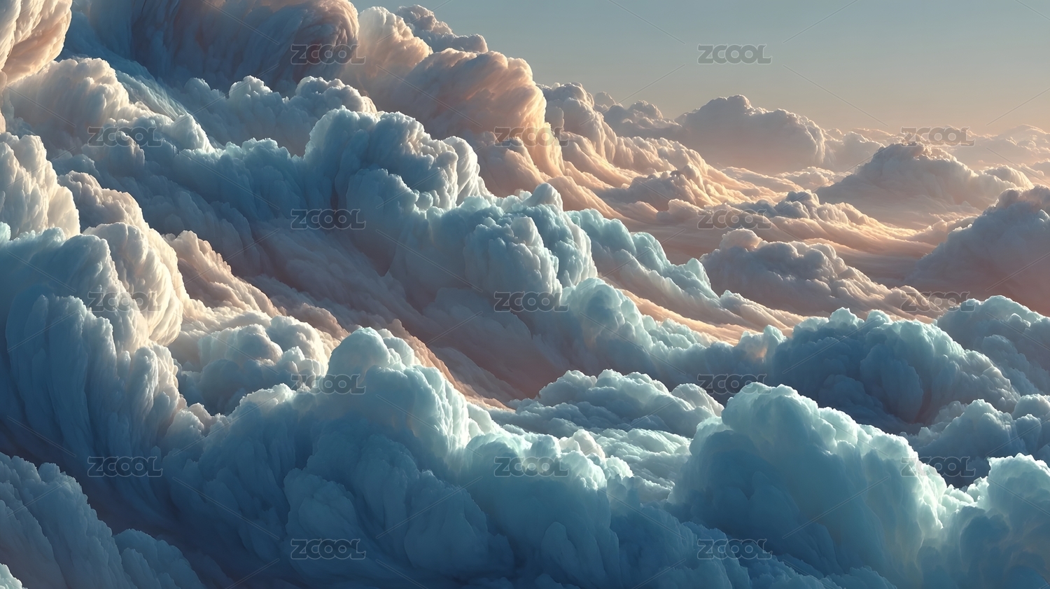 干净蓝天美丽白云抽象PPT海报主视觉背景