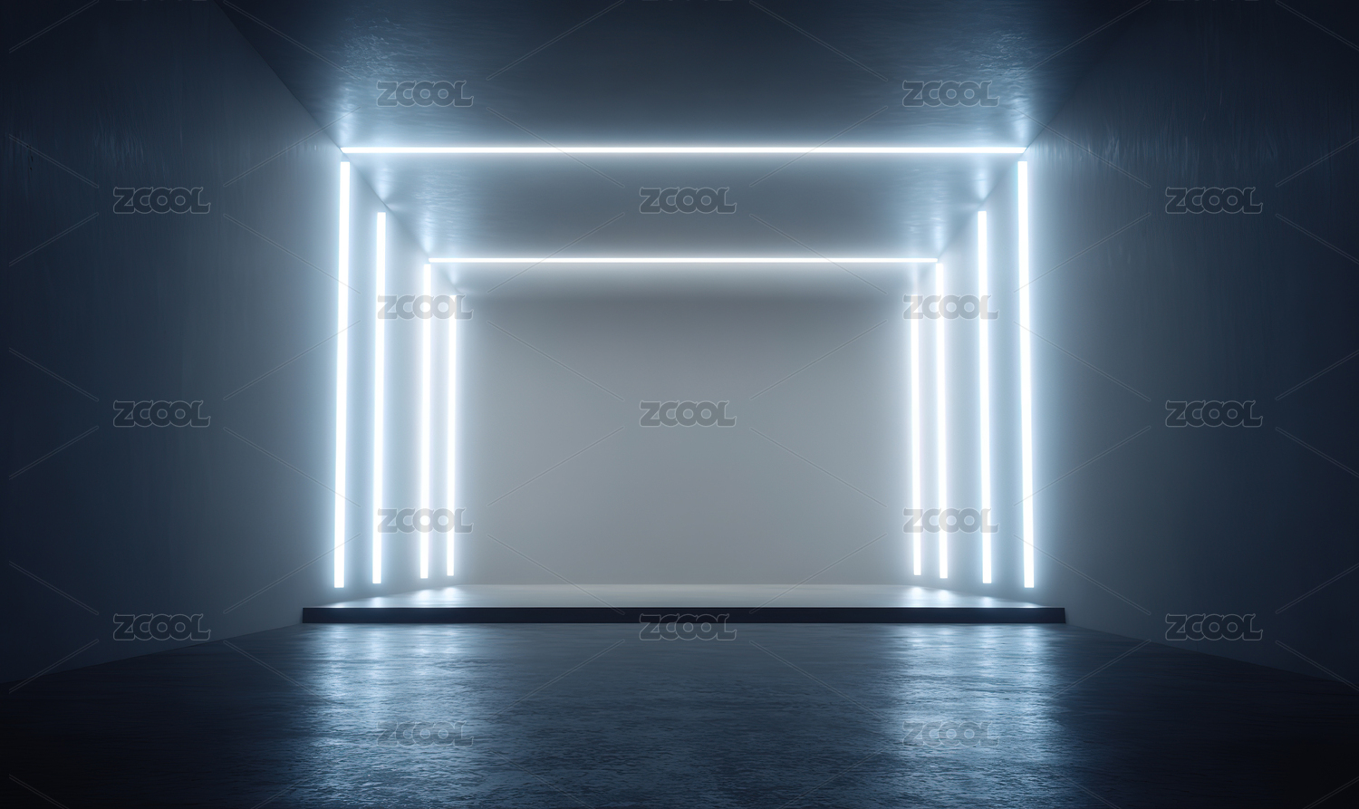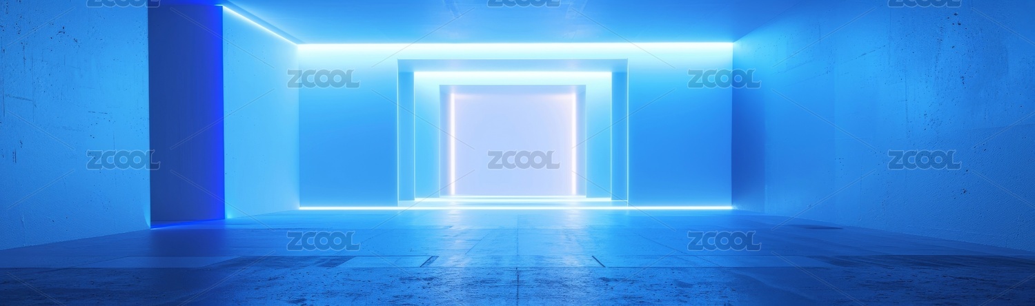 蓝色霓虹灯框的空旷房间