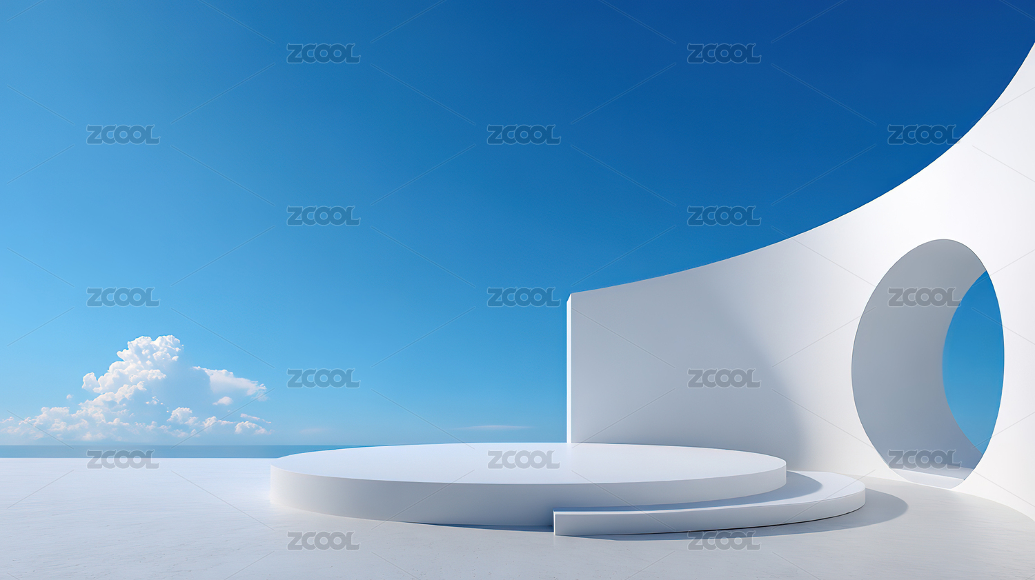 白色拱门蓝天白云极简主义