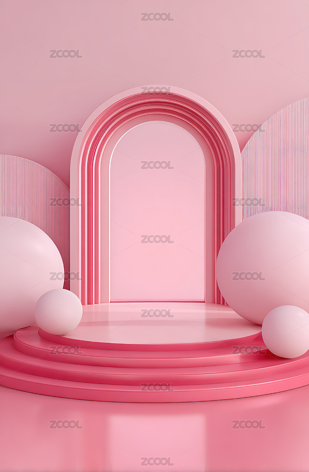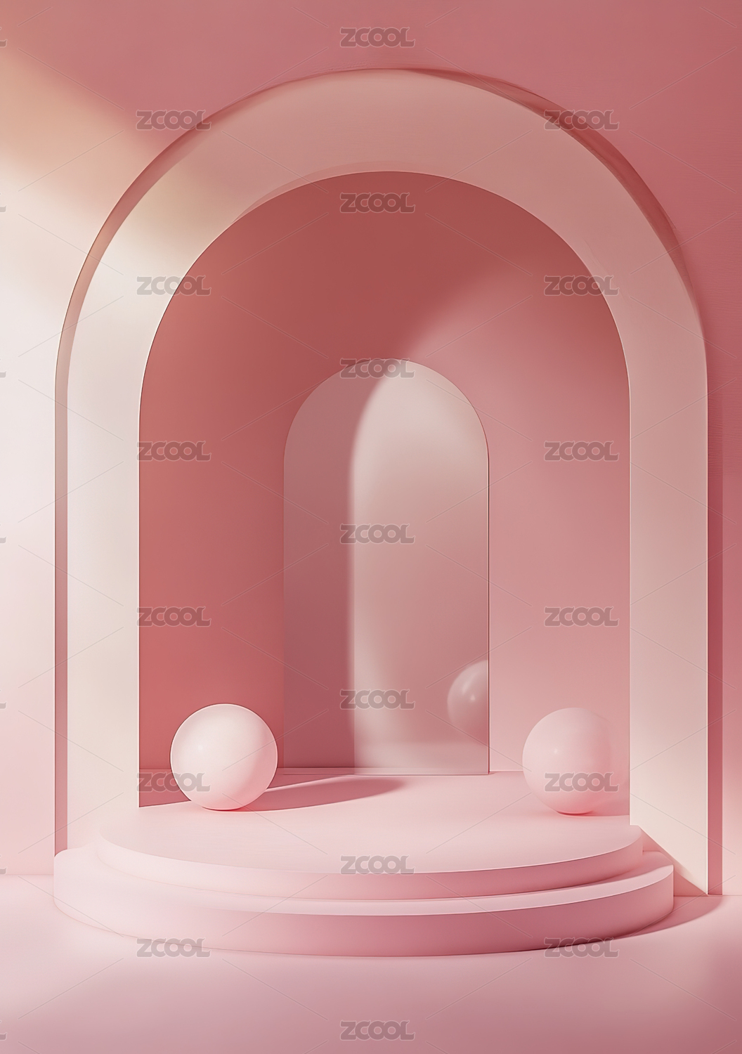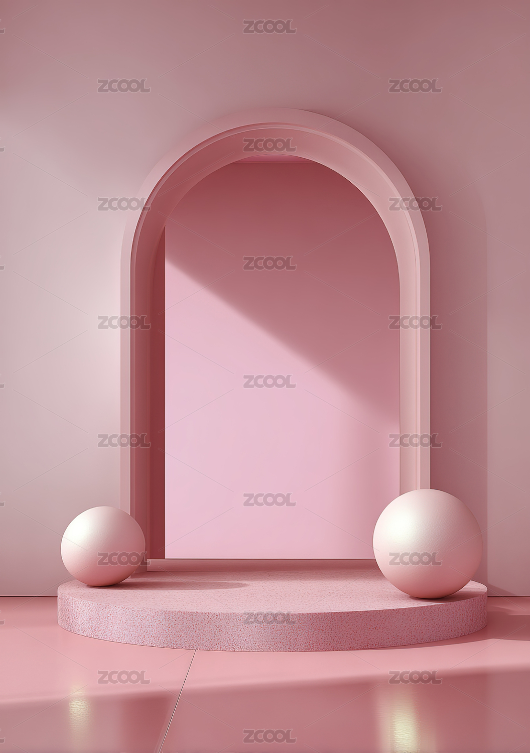 粉色拱门与球体的极简场景