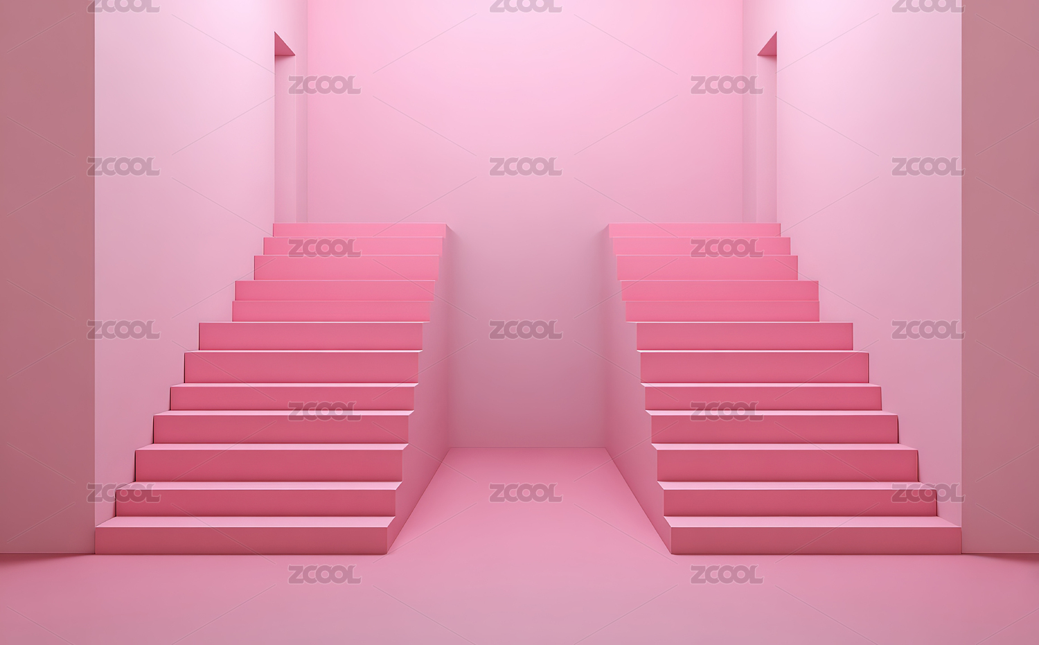 蓝色和橙色柔和色彩 渲染楼梯背景