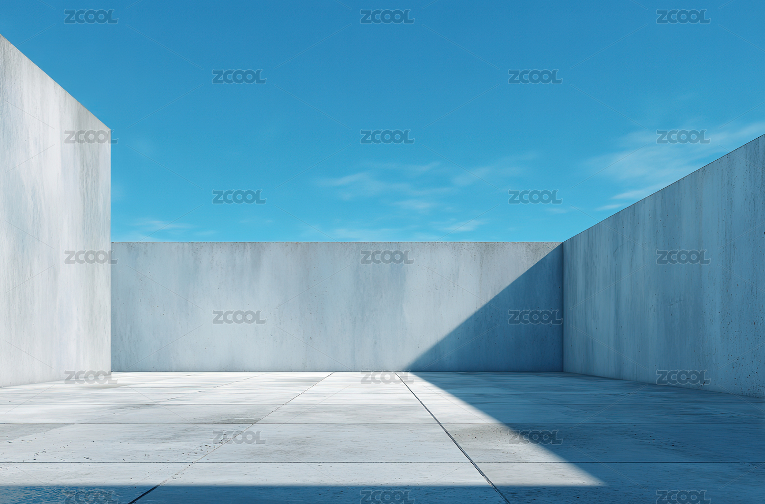 混凝土墙与蓝天的空旷场景