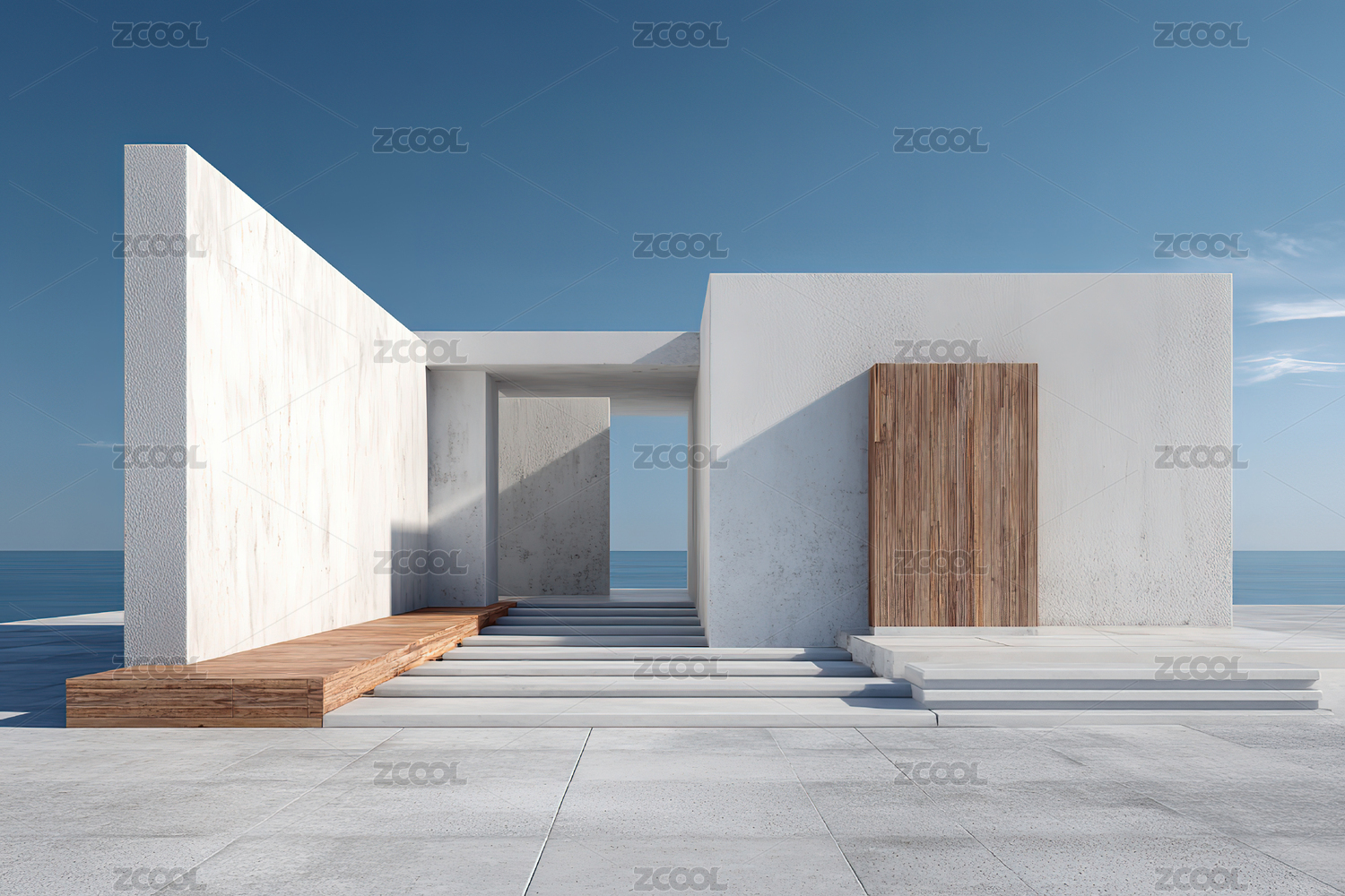 海边方盒建筑 极简主义 阳光