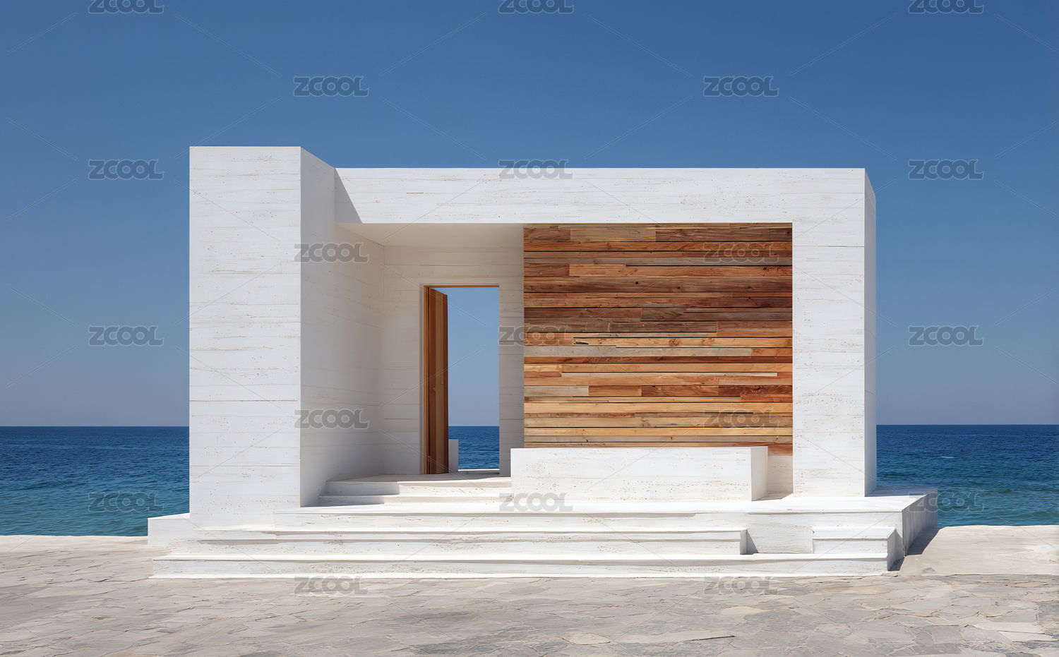 极简白建筑与碧海蓝天