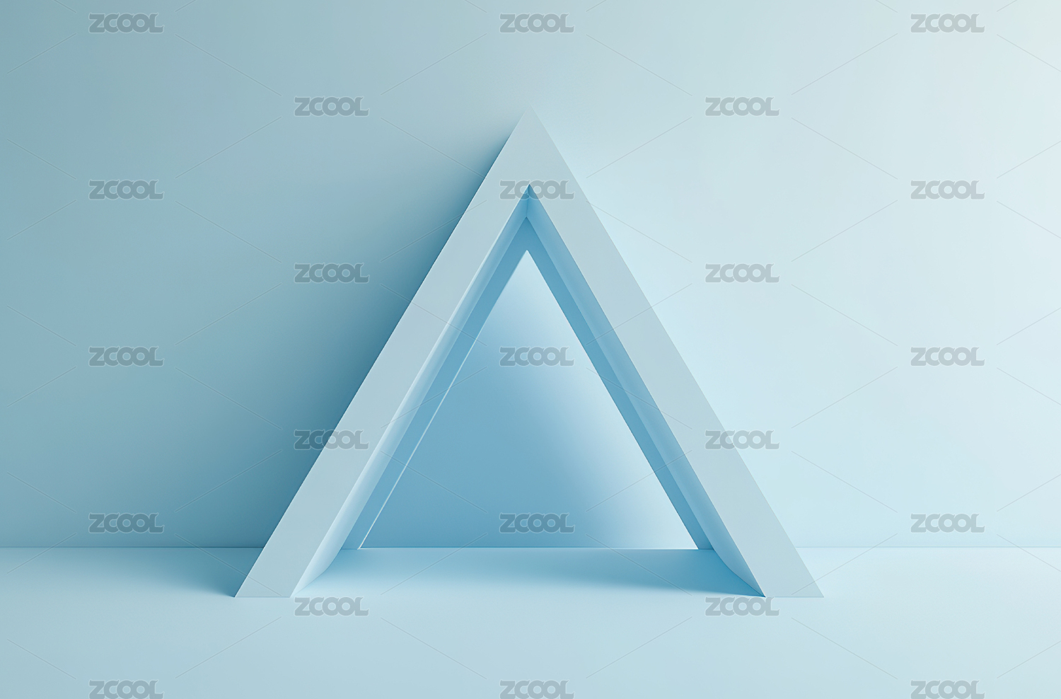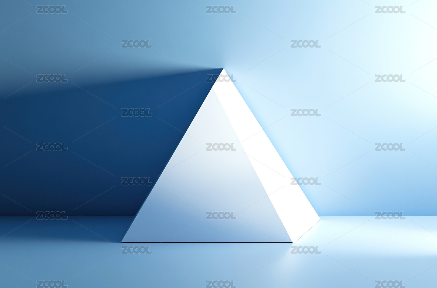 白色三角形框架置于蓝色背景