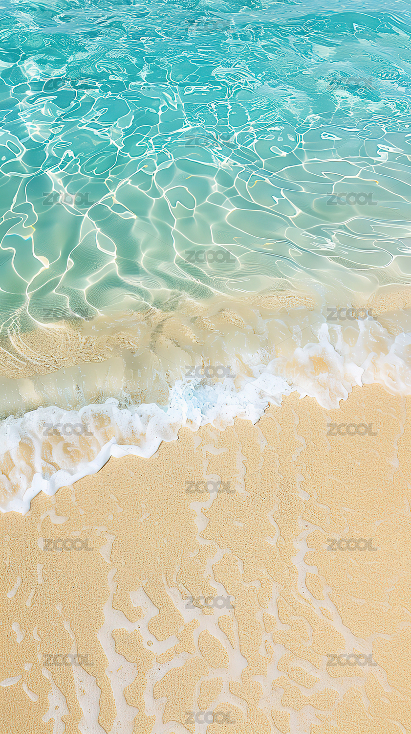 清澈海水轻拍沙滩