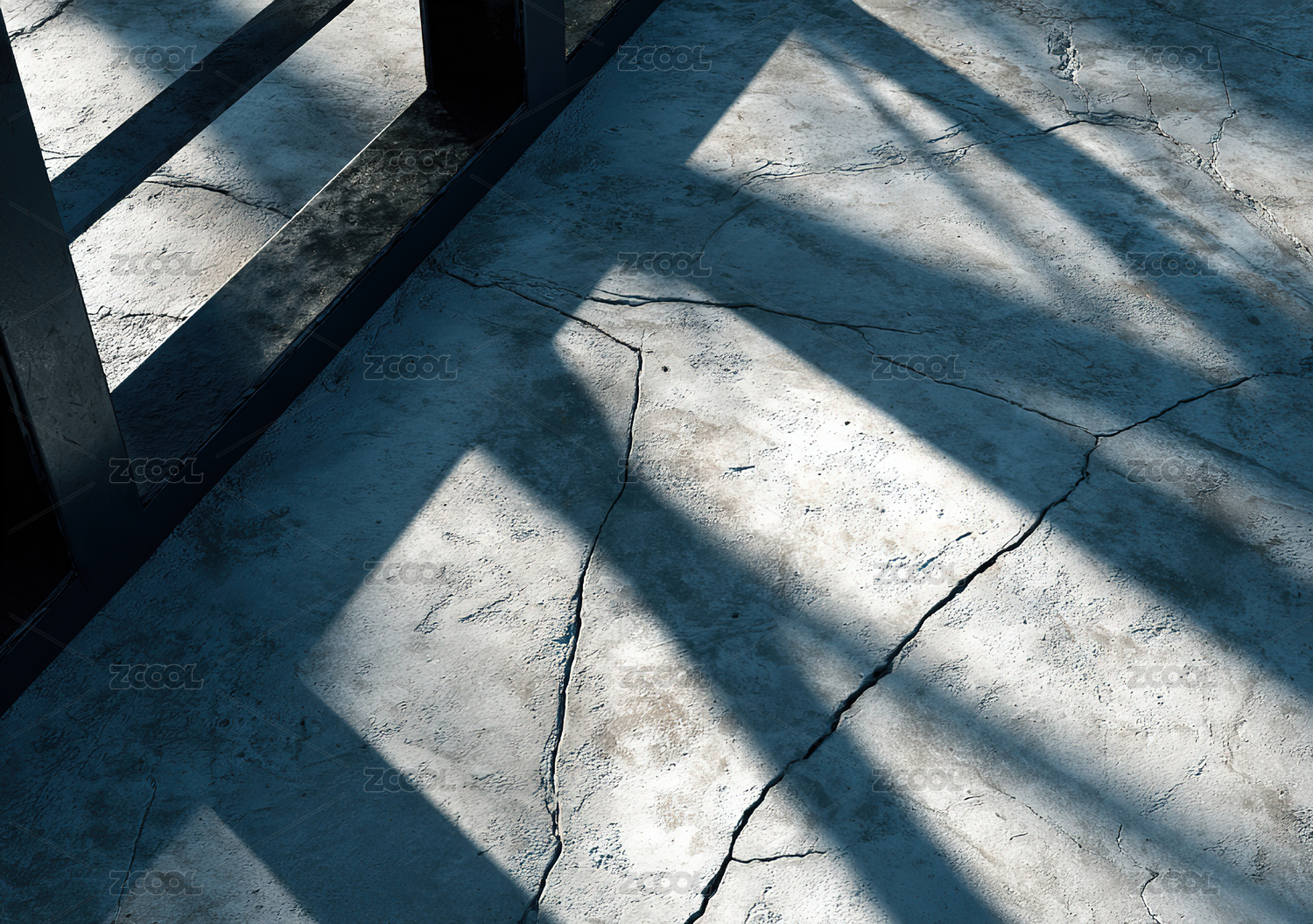 混凝土地面上的线条光影