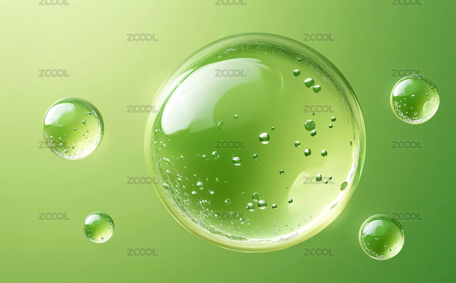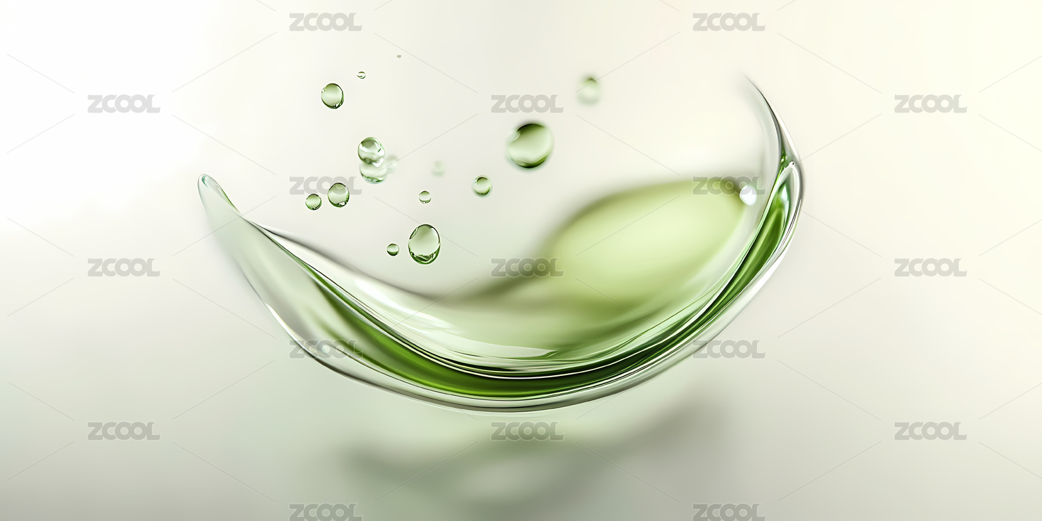 绿色液体气泡悬浮于透明背景