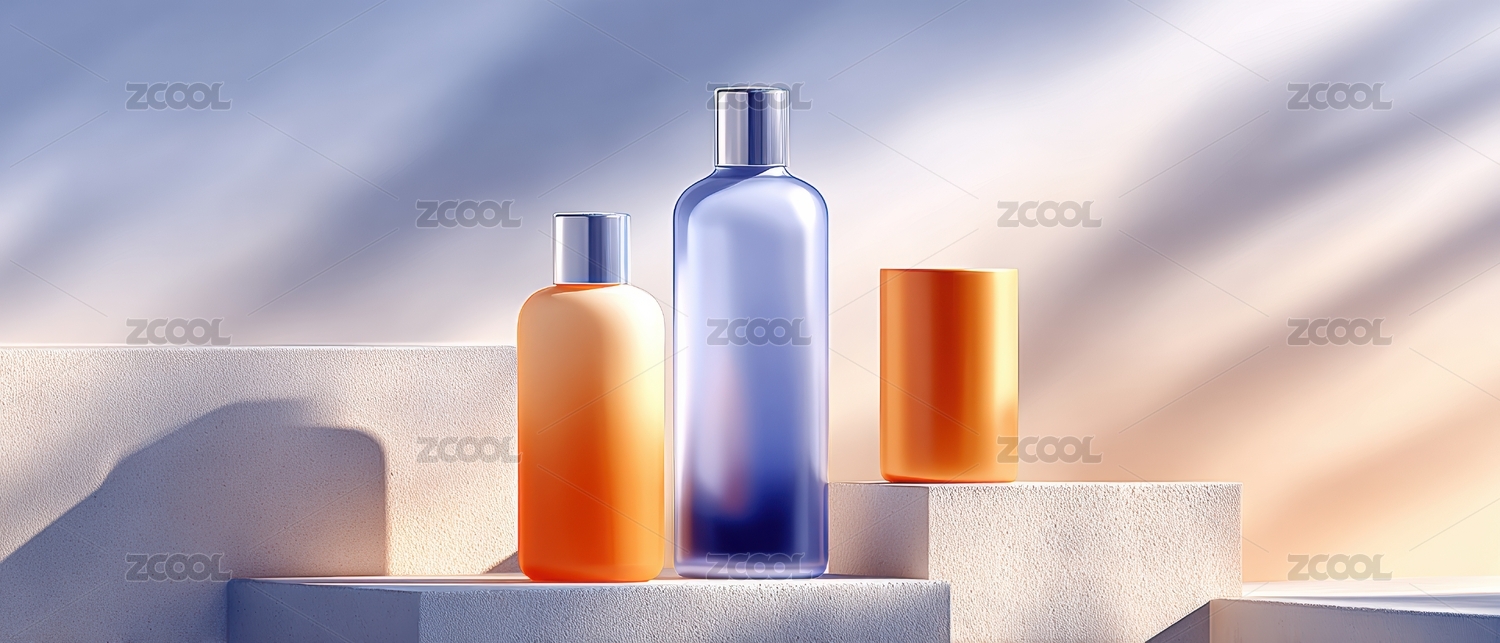 蓝色护肤品泵头按压膏体素颜霜个人护理