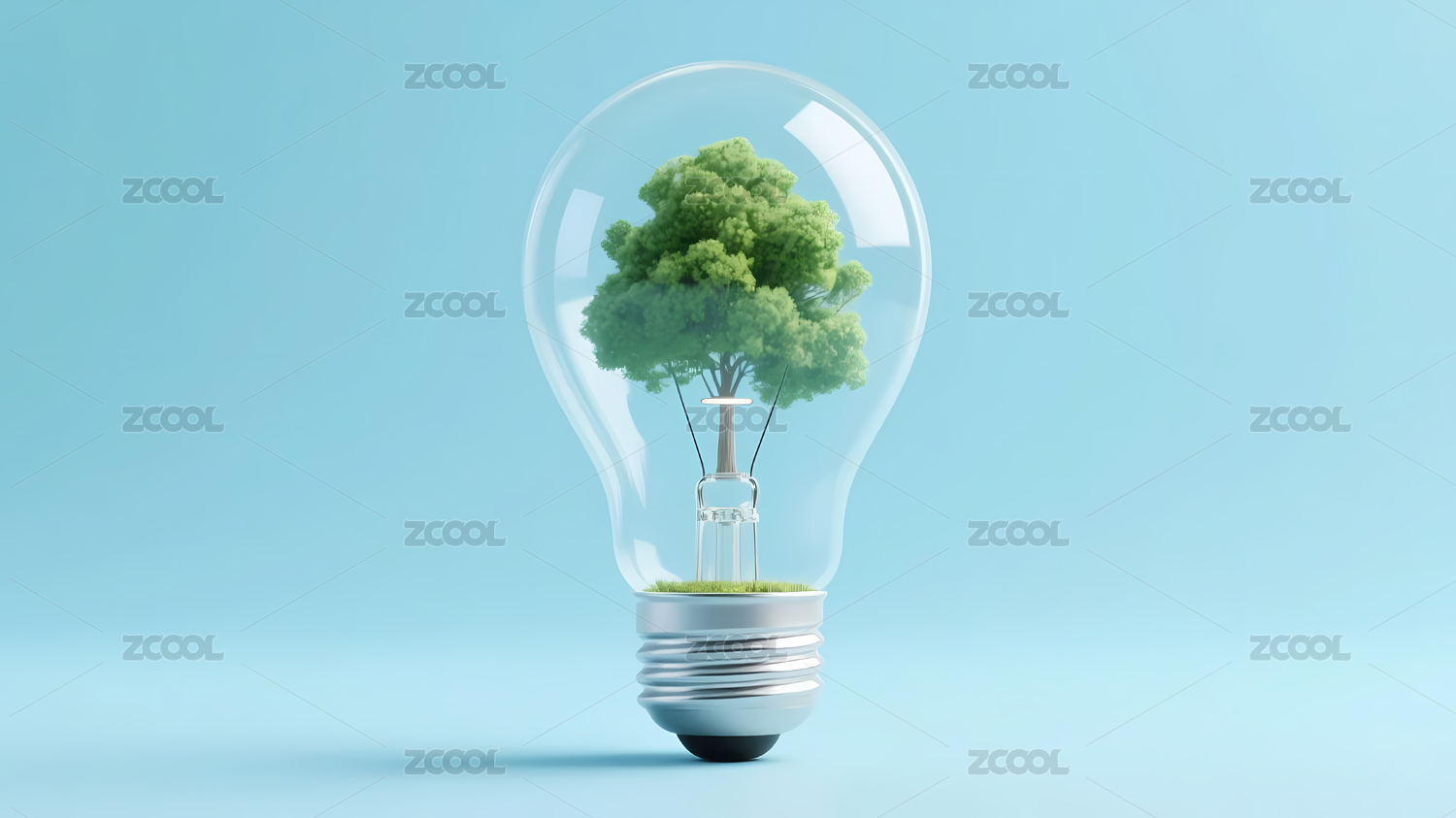 灯泡内的绿色树木