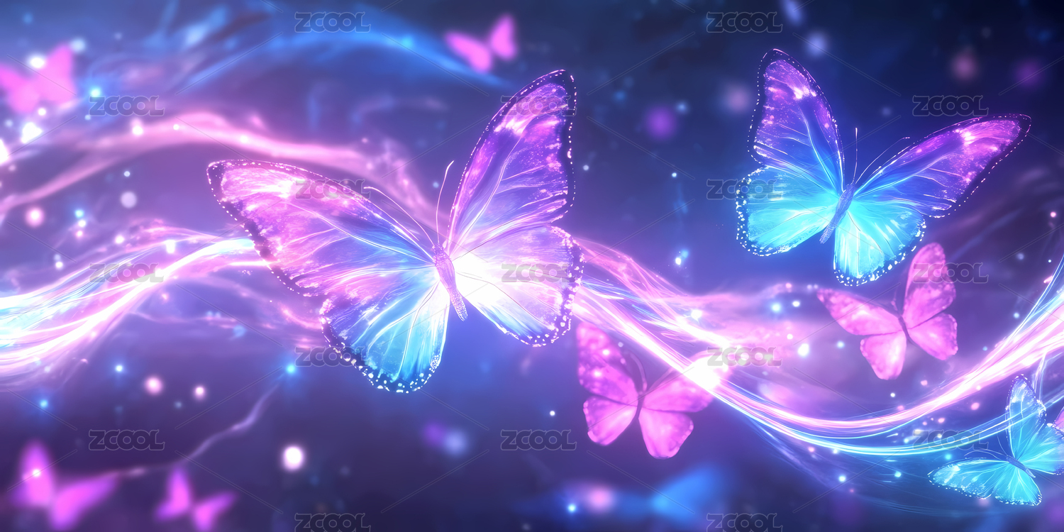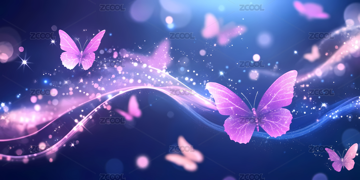 梦幻蝴蝶在紫色光晕中翩翩起舞