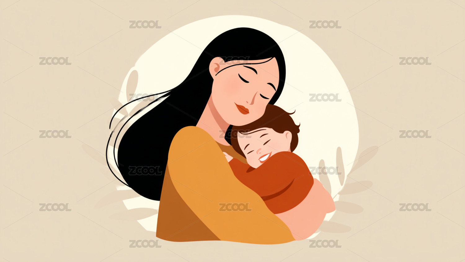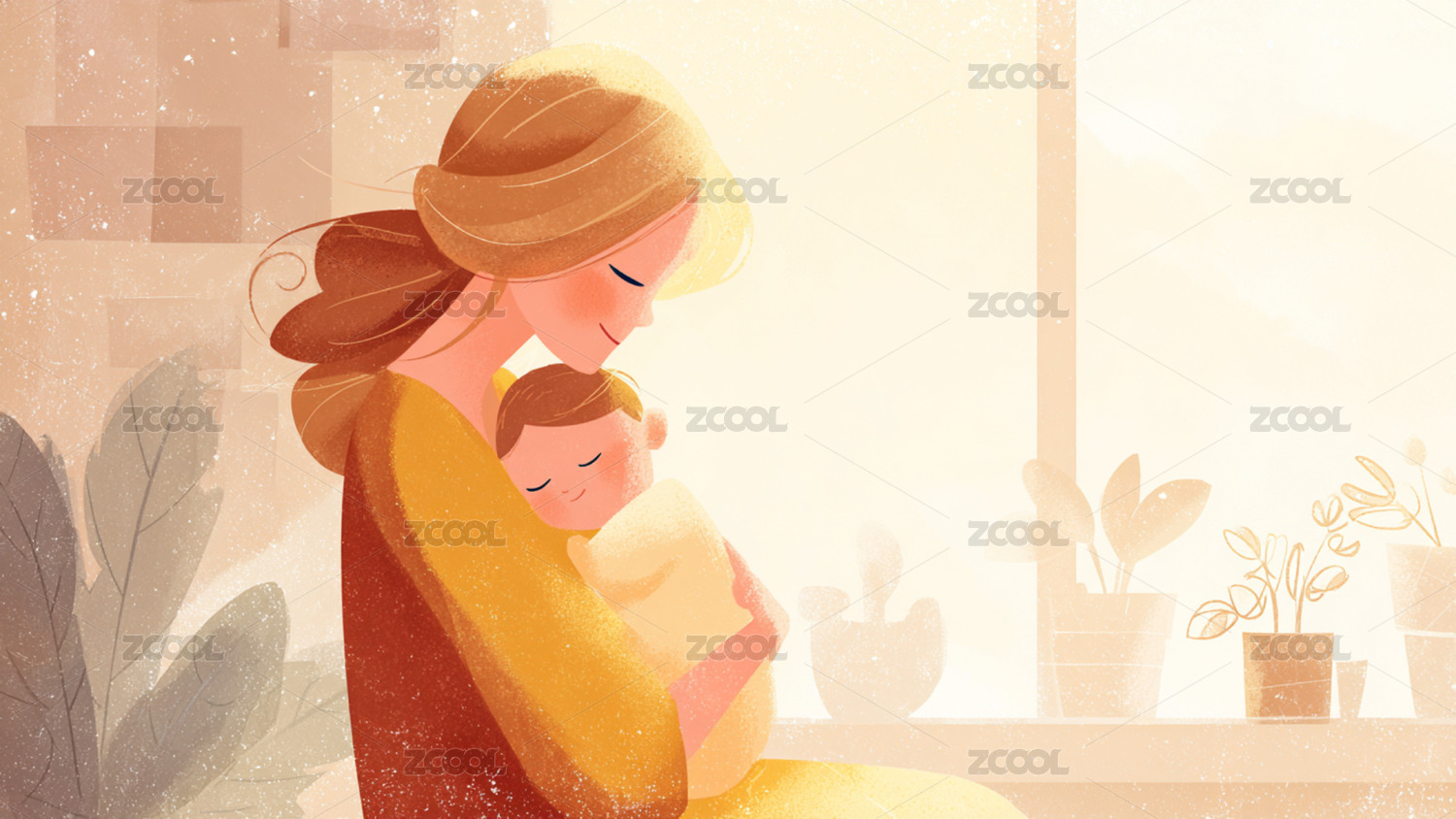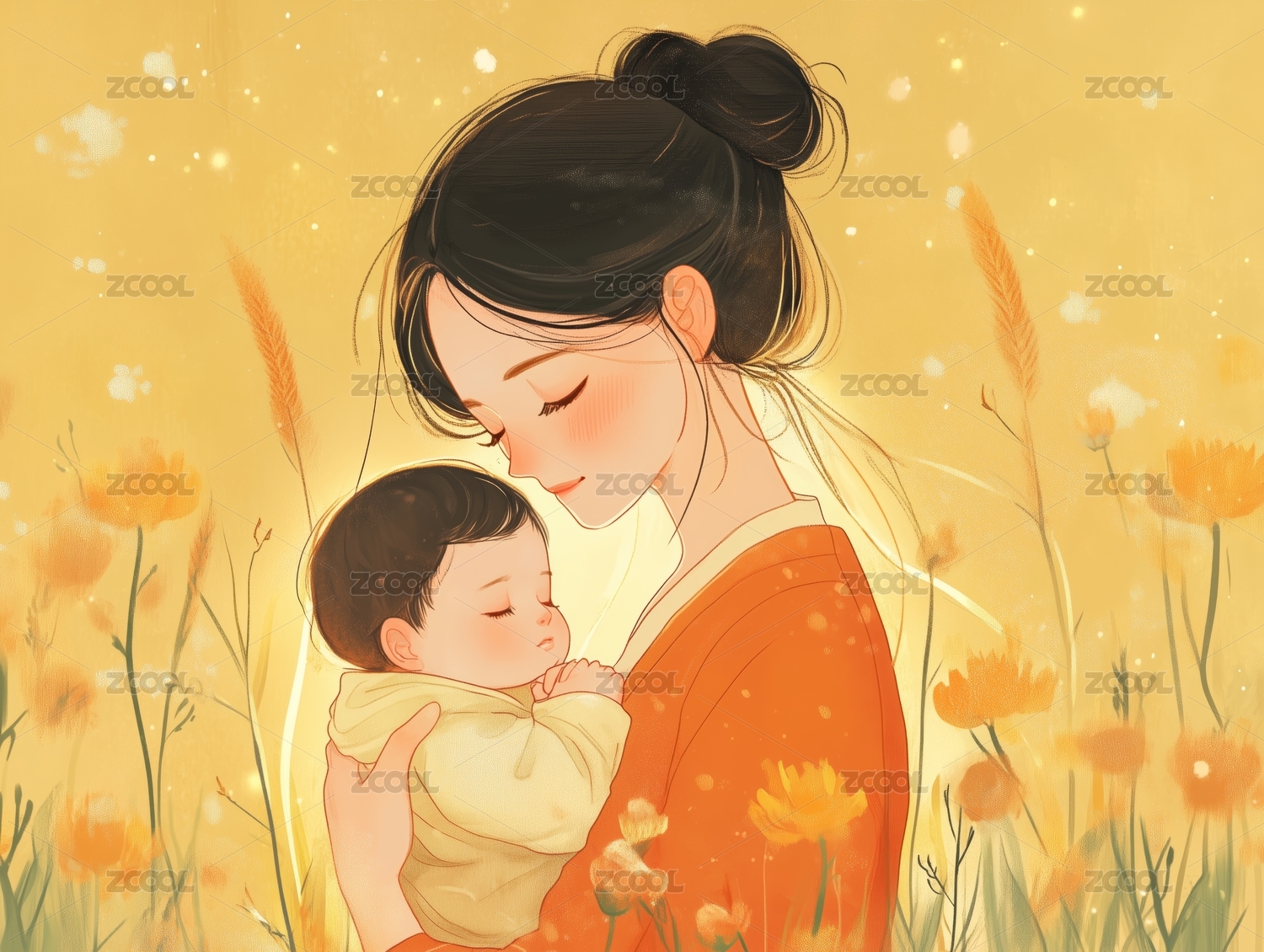 母亲,婴儿,玩耍,亲子,专注,柔和,温馨,二维插画,拥抱,户外