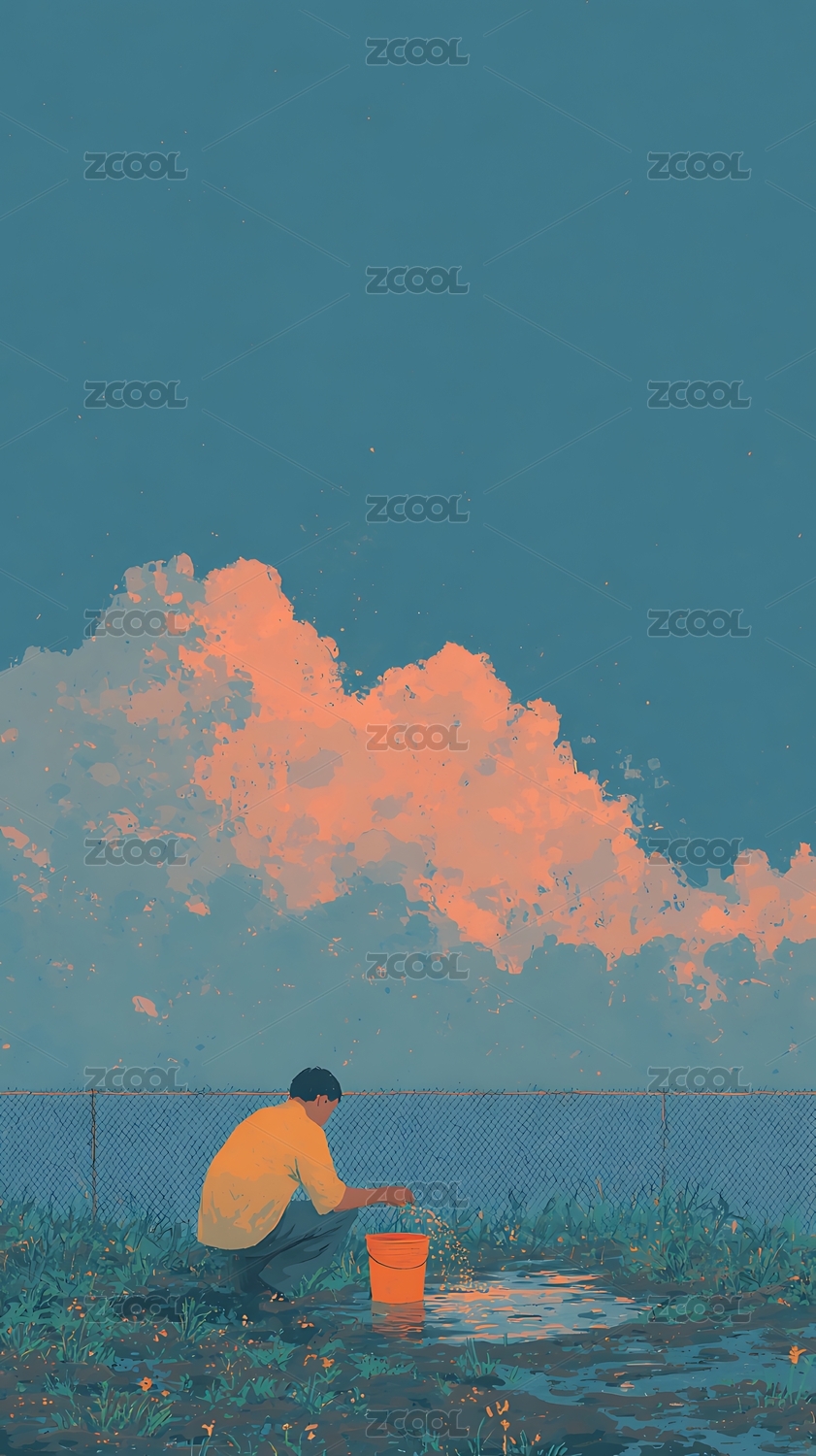 人物,天空,云朵,希望,户外,平静,田野,植树,自然,阳光