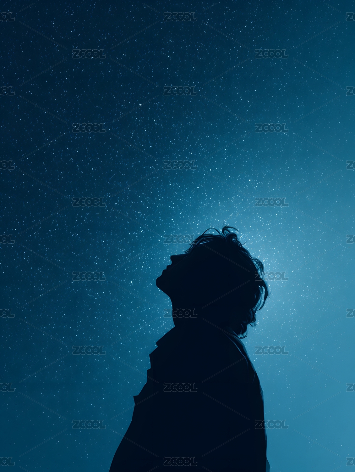 人于星空下仰头的孤独剪影