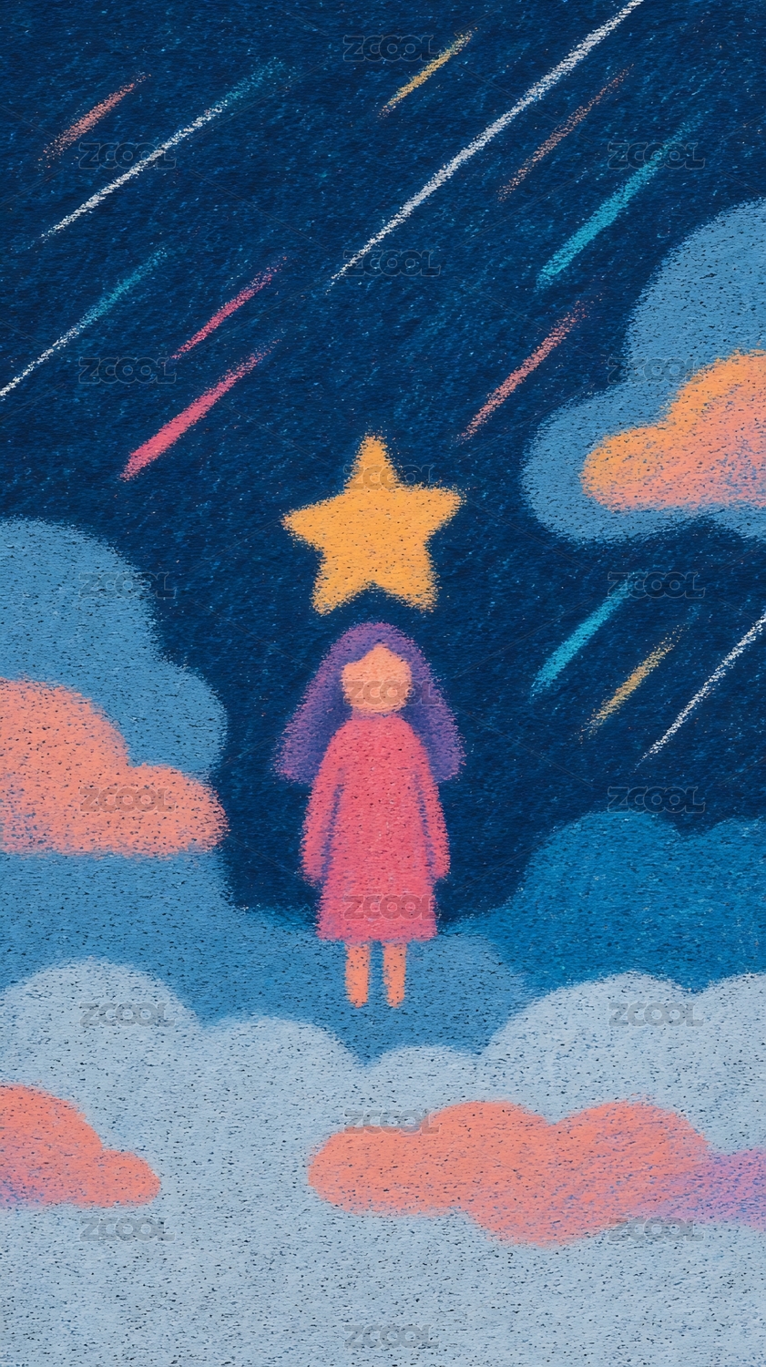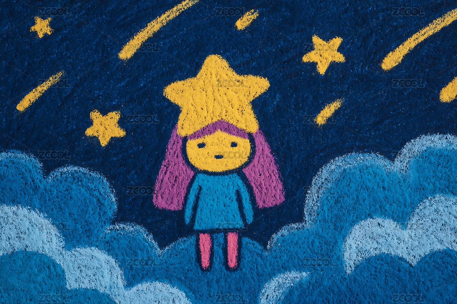 梦幻,星空,蓝色,夜晚,云朵,星星,孤独,仰望,童真,希望
