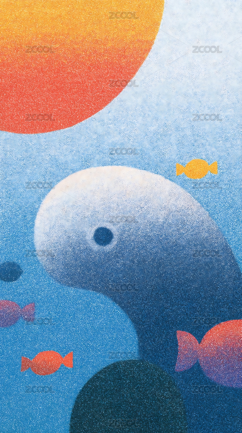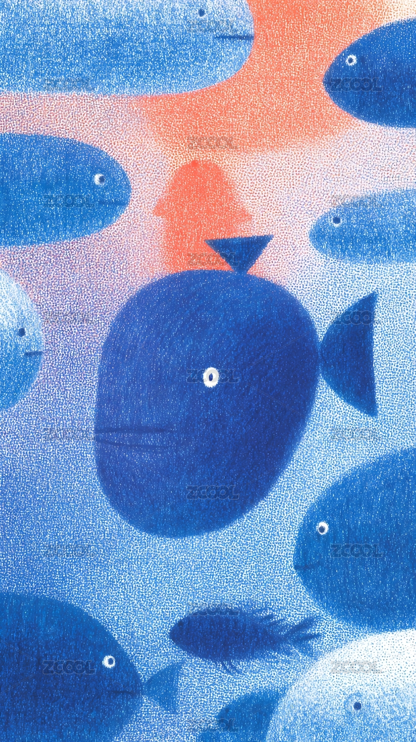 色彩,卡通,可爱,简单,蓝色,橙色,海底,白色,鱼类,游动
