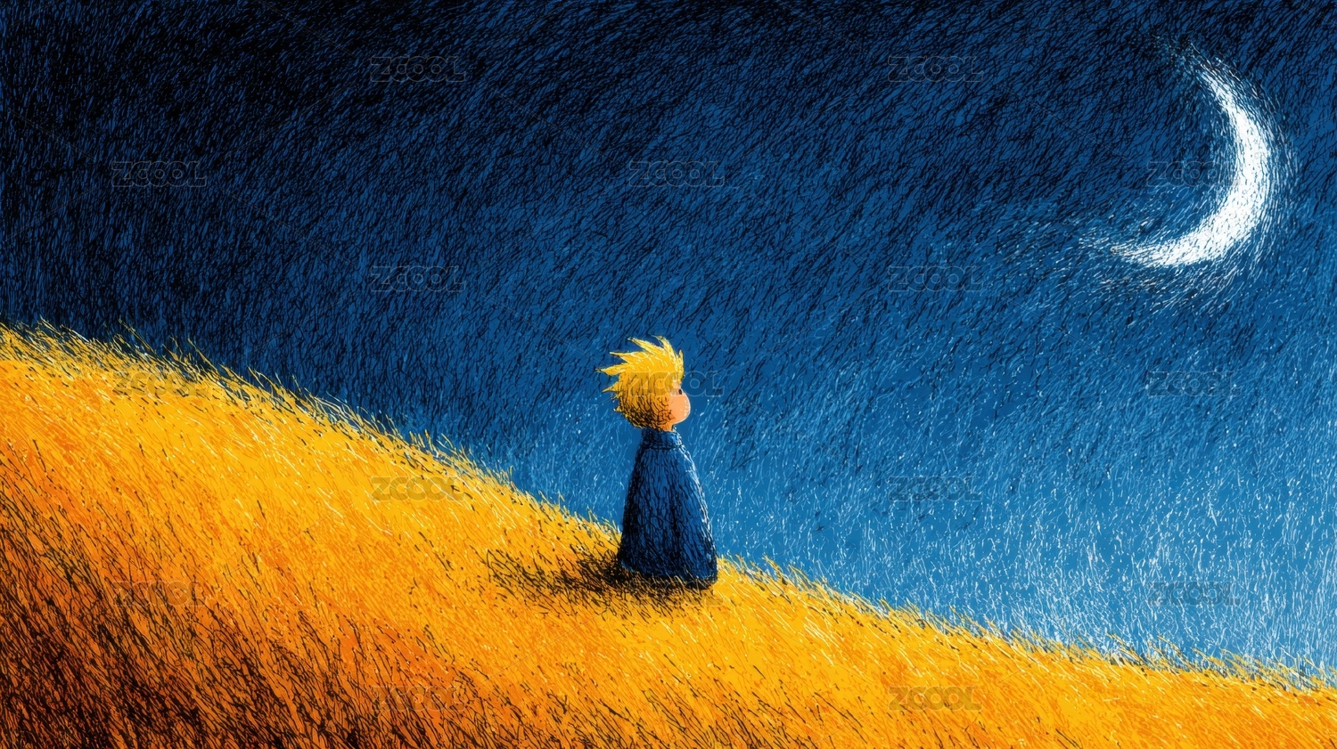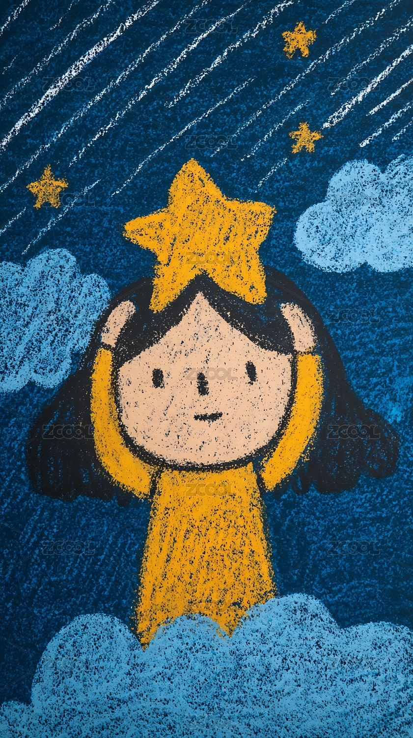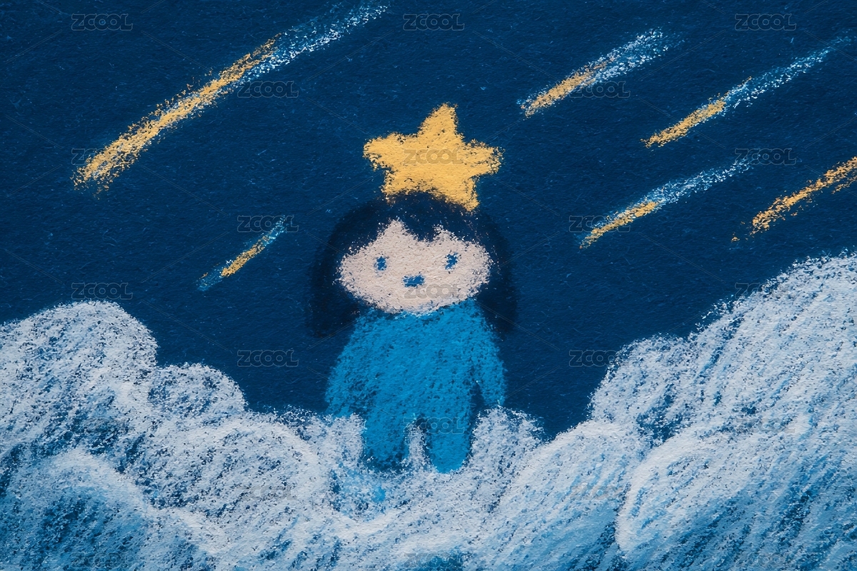 人物,可爱,星空,蓝色,夜晚,云朵,童趣,星星,仰望,浪漫