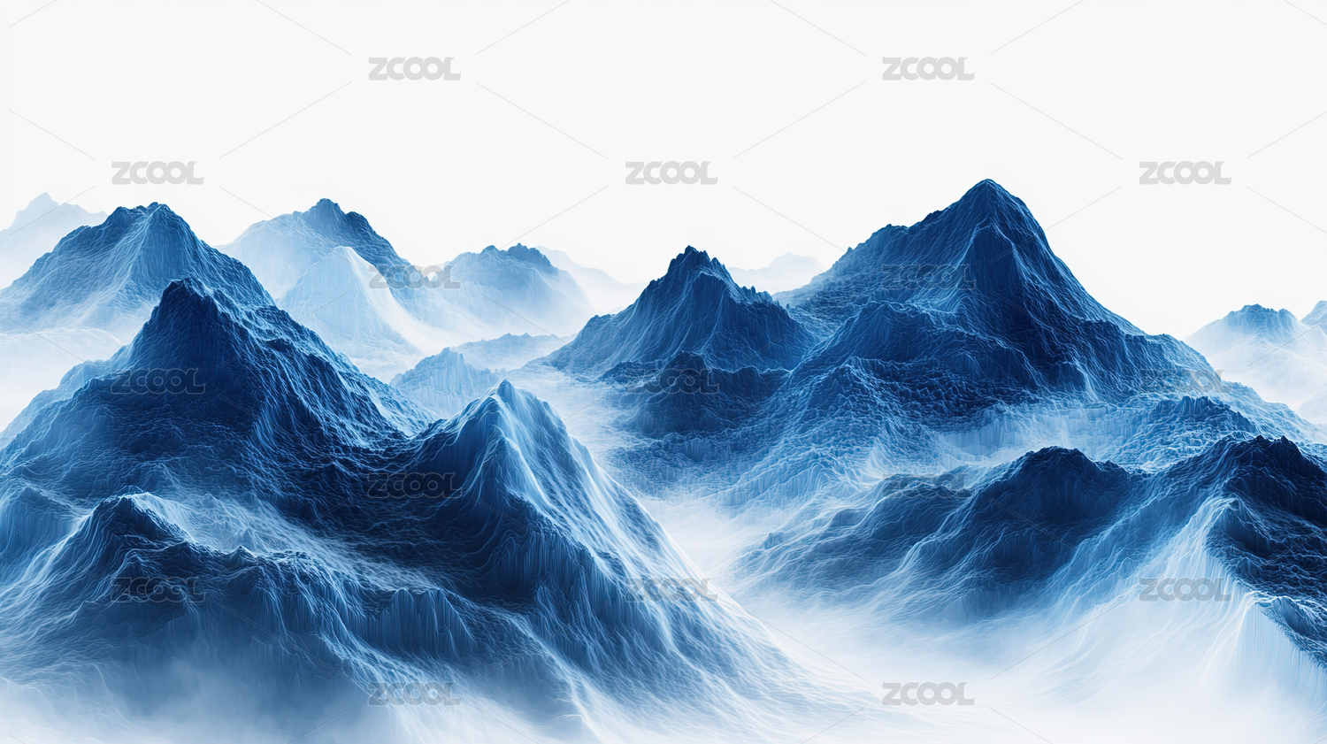 蓝色,山峰,云雾,金色,天空,自然,景观,立体,雄伟,对比