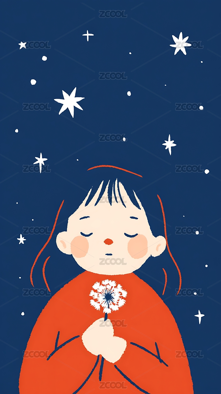 女孩仰望星空吹蒲公英