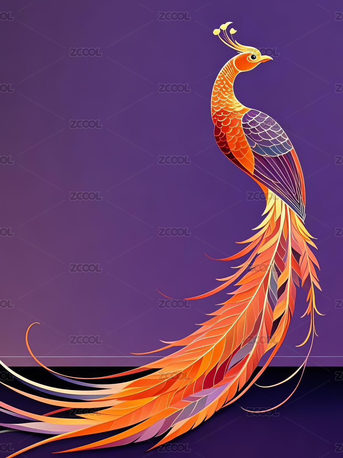凤凰,鸟,吉祥,极简,图标,图案,橙色,暖色,壁纸,背景