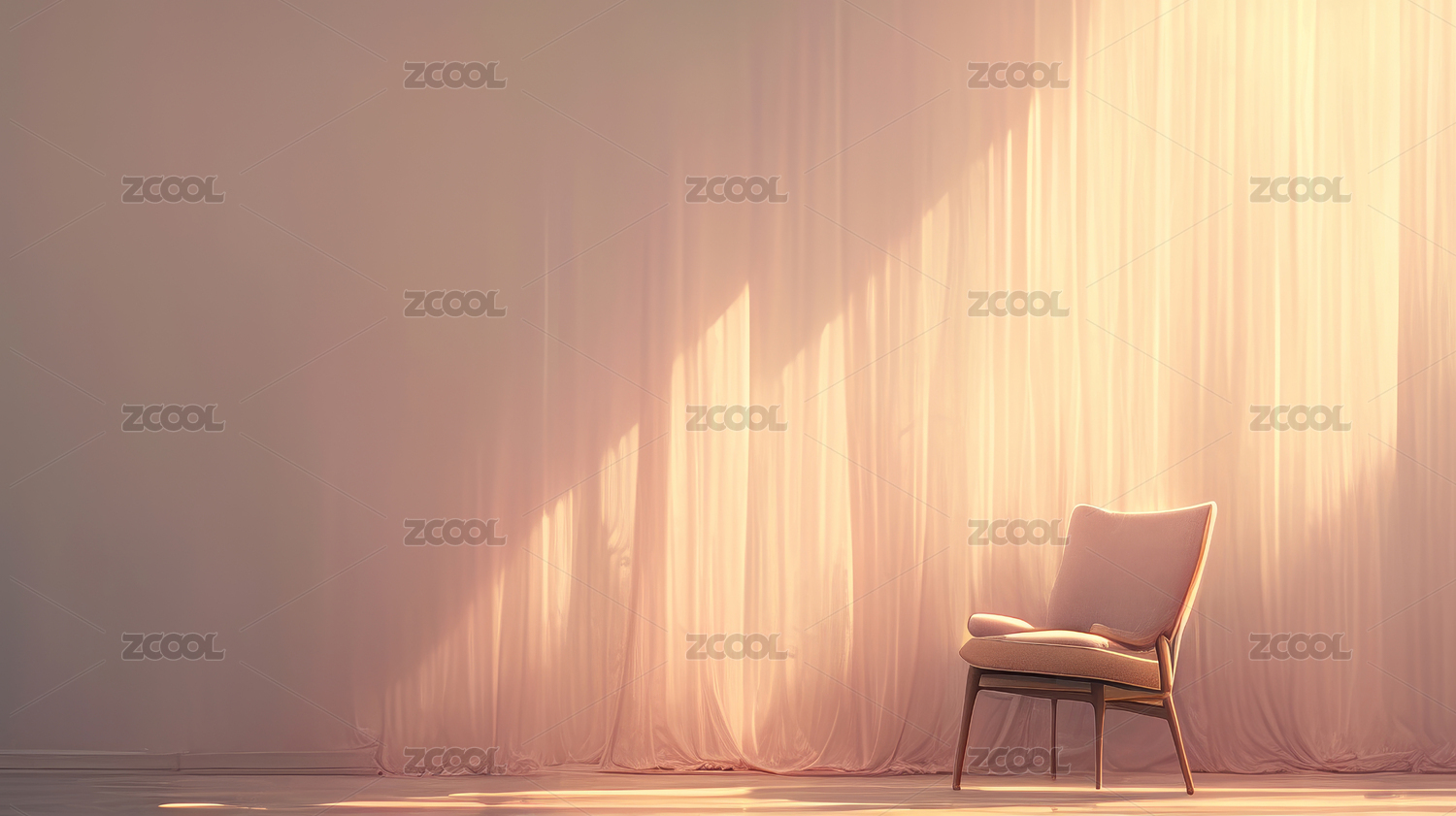 宁静,室内,椅子,窗帘,阳光,光影,柔和,温暖,舒适,简约