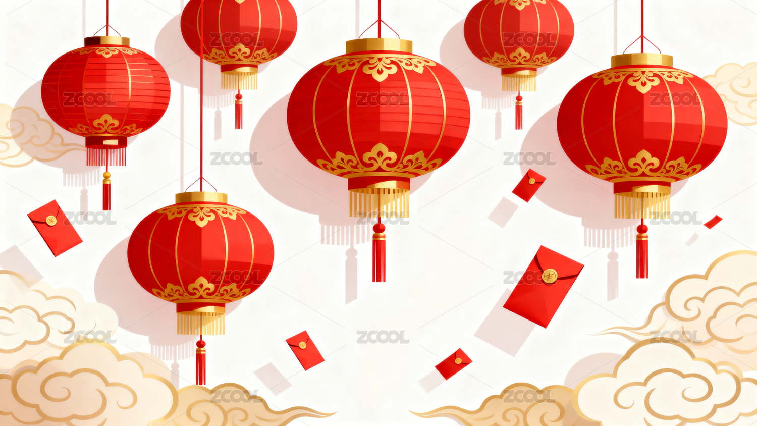 红色,装饰,传统,云朵,文化,灯笼,美好,节日,烟花,庆祝