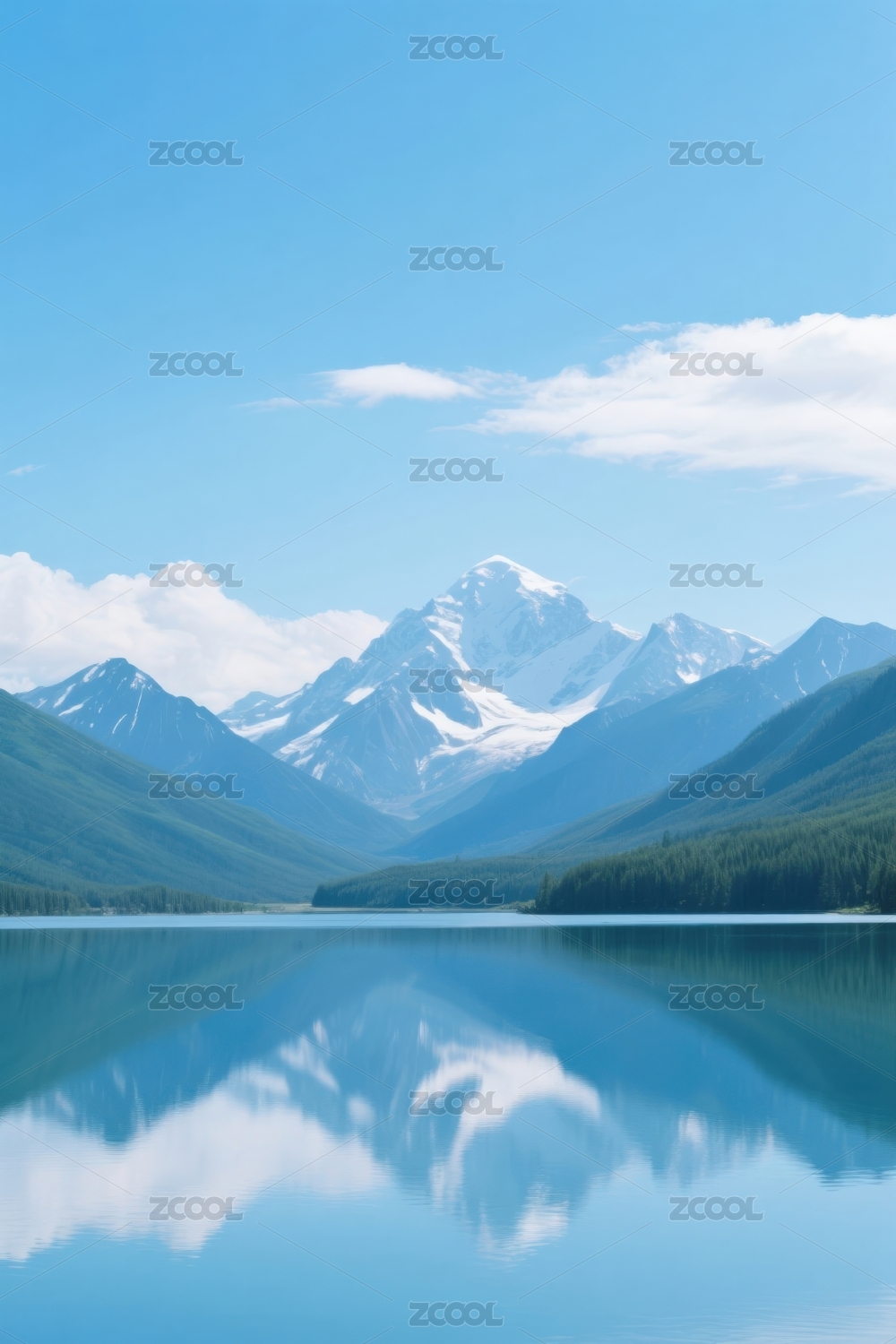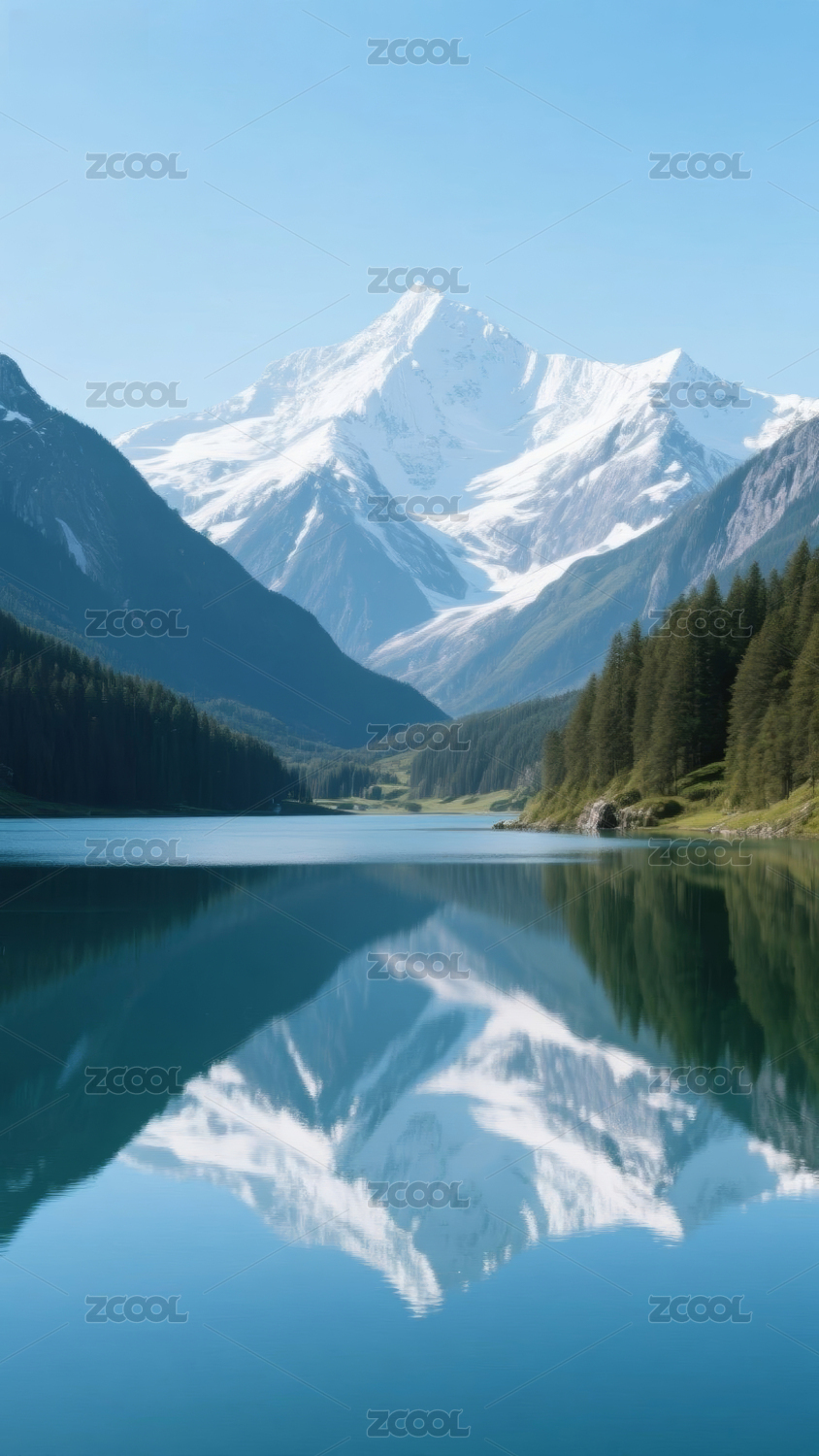 雪山倒影宁静湖面
