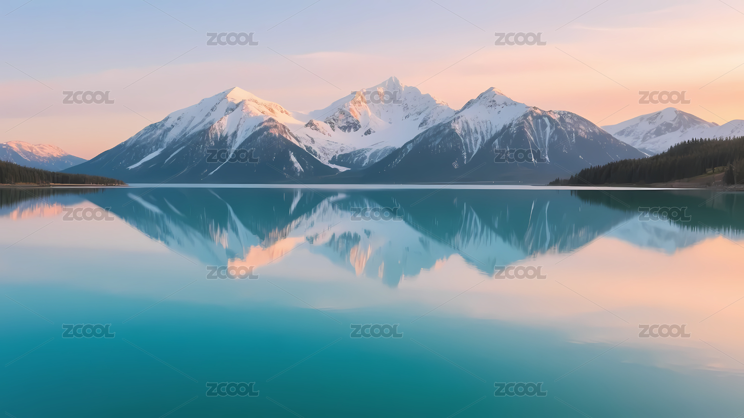 雪山湖面倒影清晨