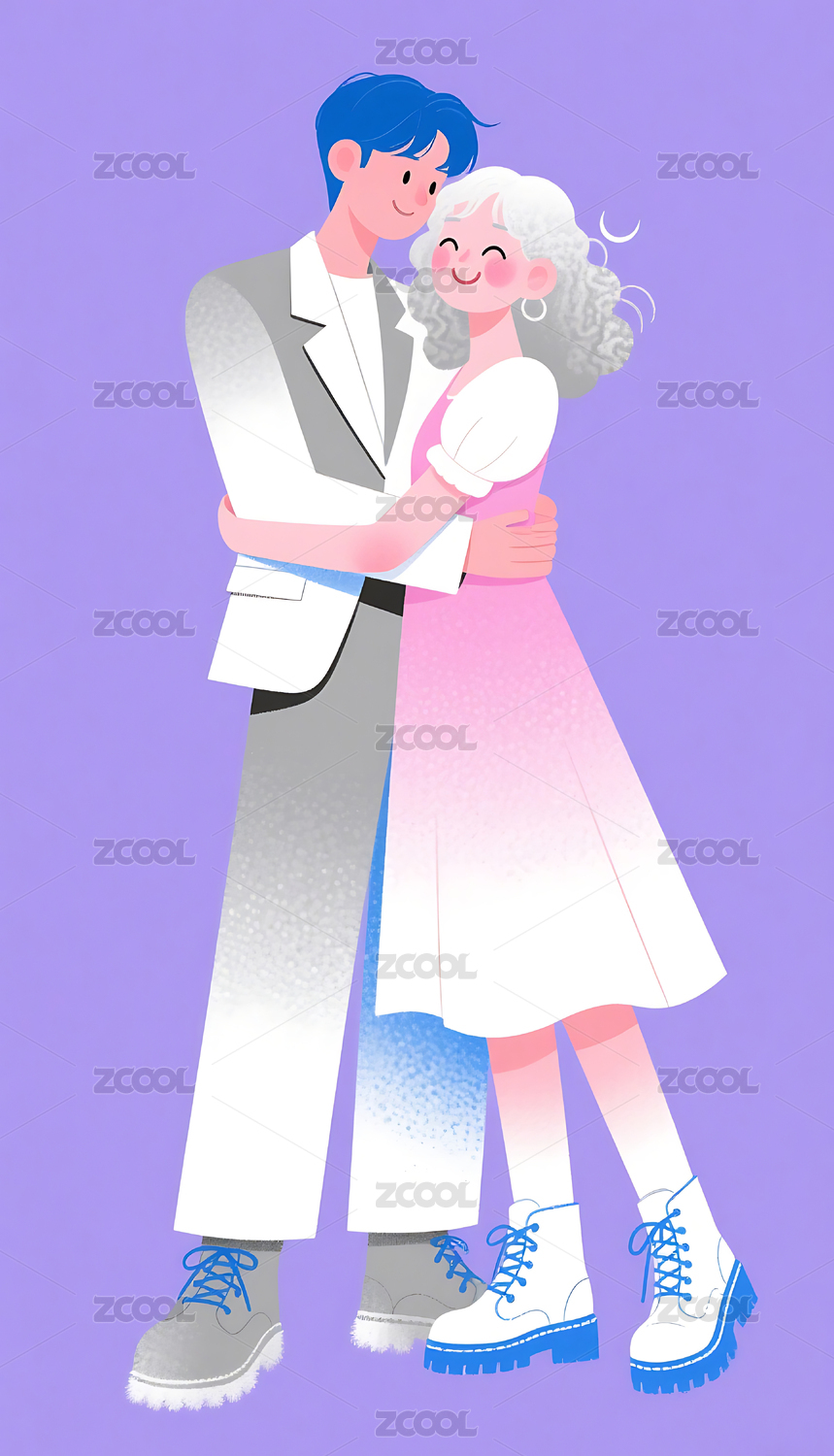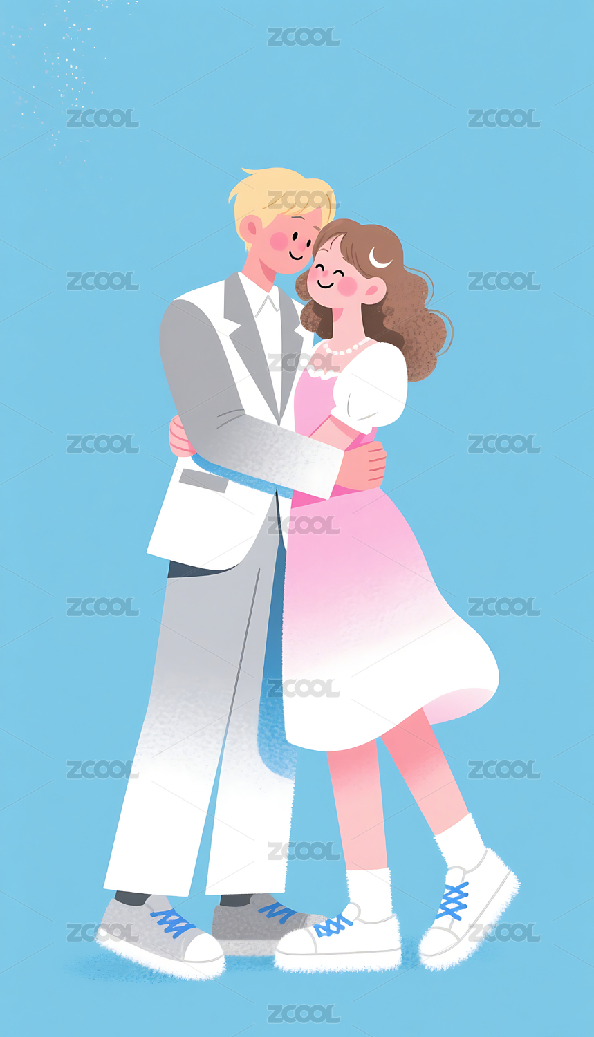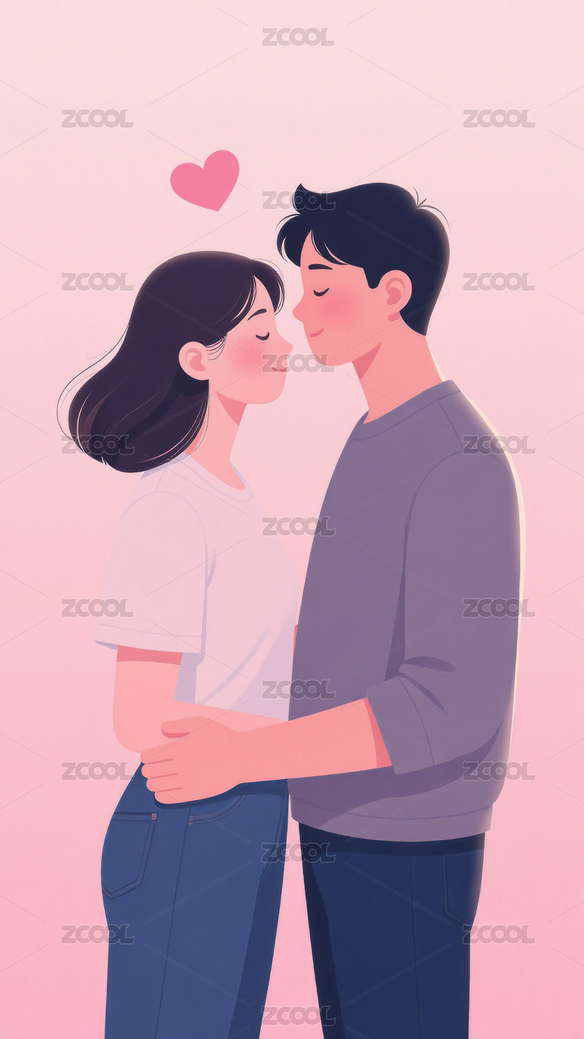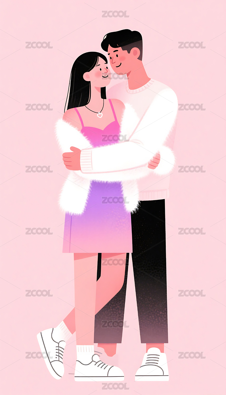 爱意满满的拥抱情侣间的甜蜜依偎情人节插画