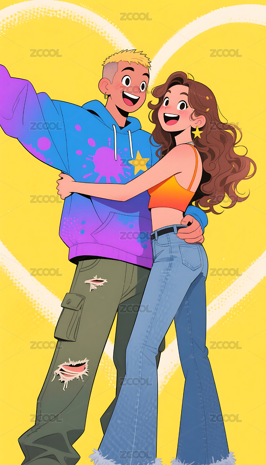 扁平风格美式时尚情人节情侣拥抱亲吻插画