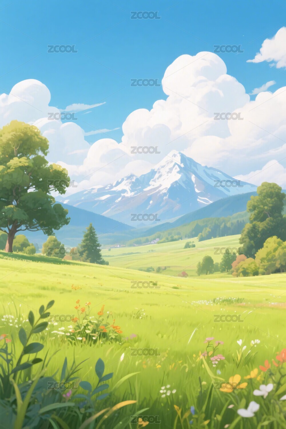草原山水风景插画
