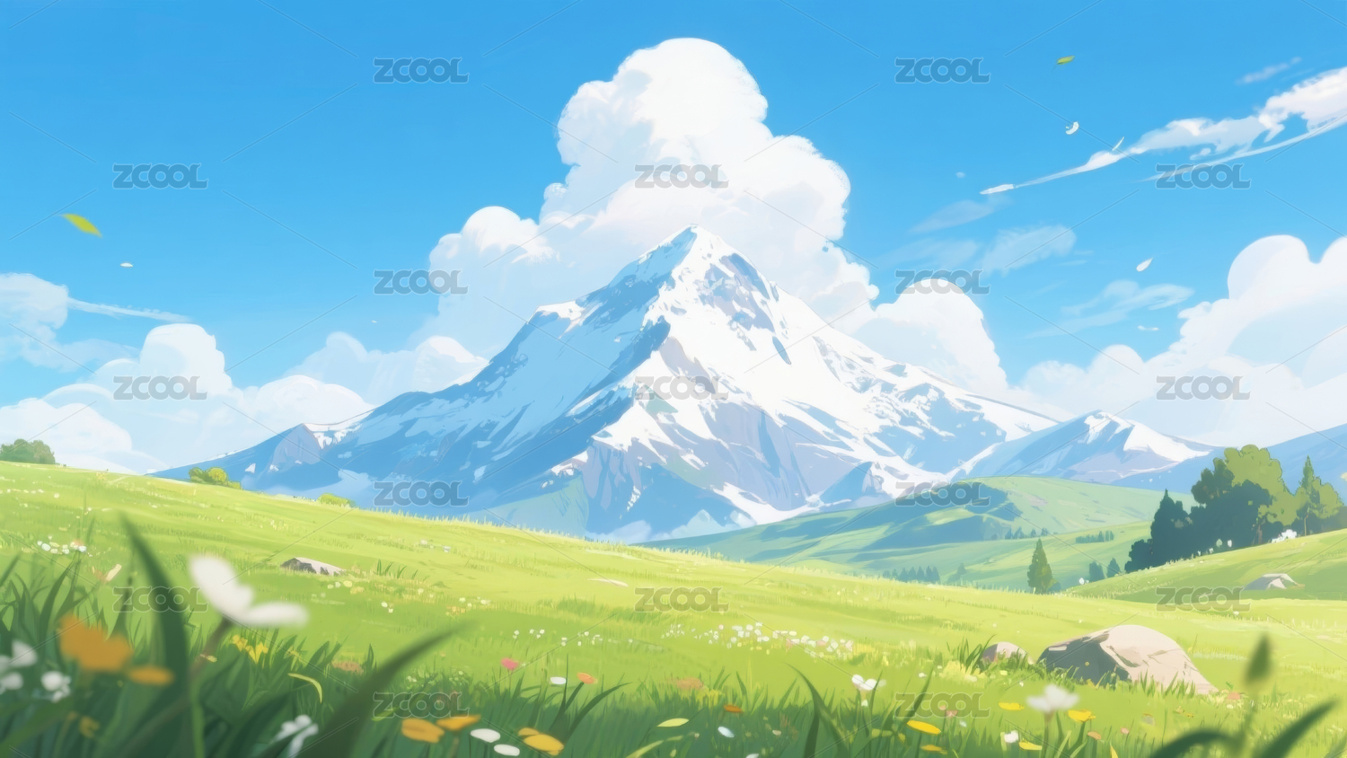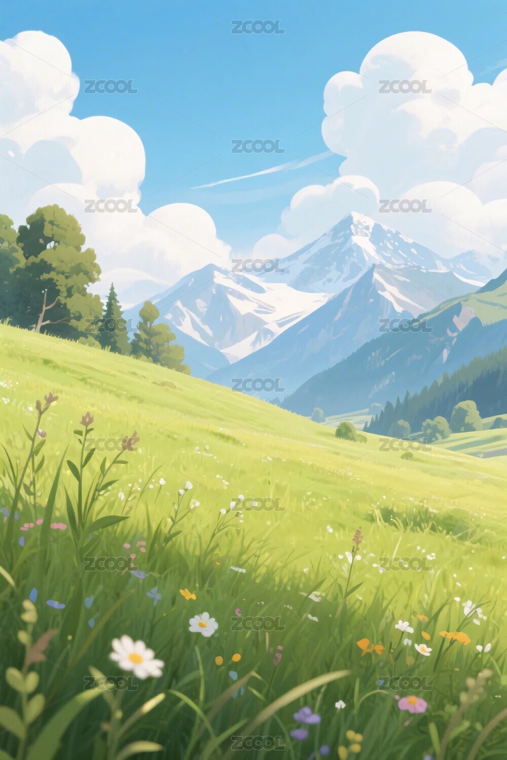 晴朗草地风景插画