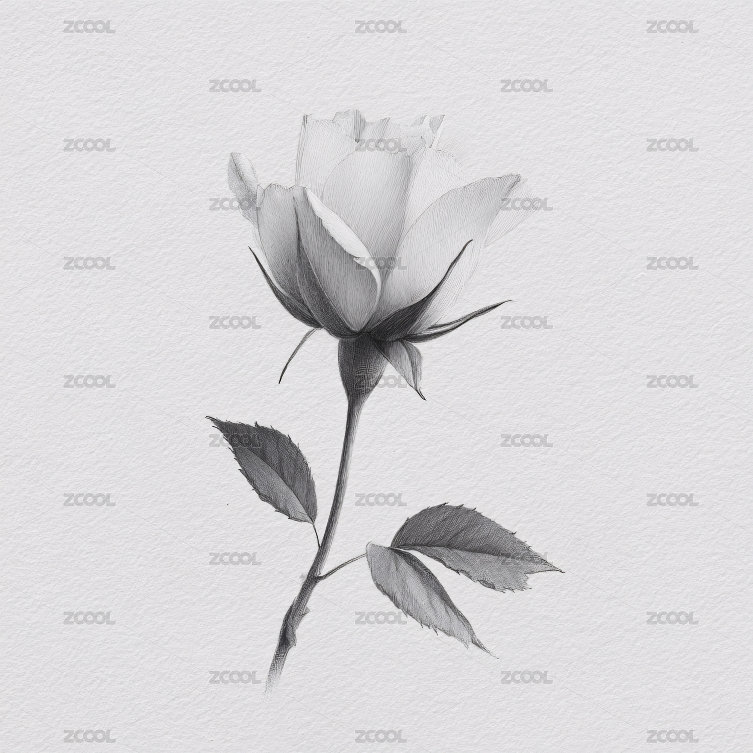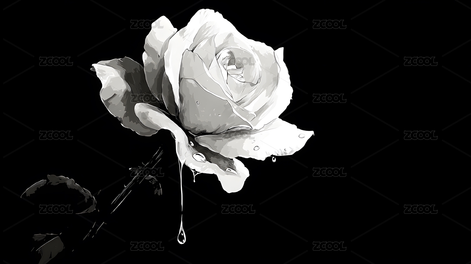 黑白,线条,轮廓,玫瑰花,插画,简约,风格,线条艺术,黑白色调,花朵