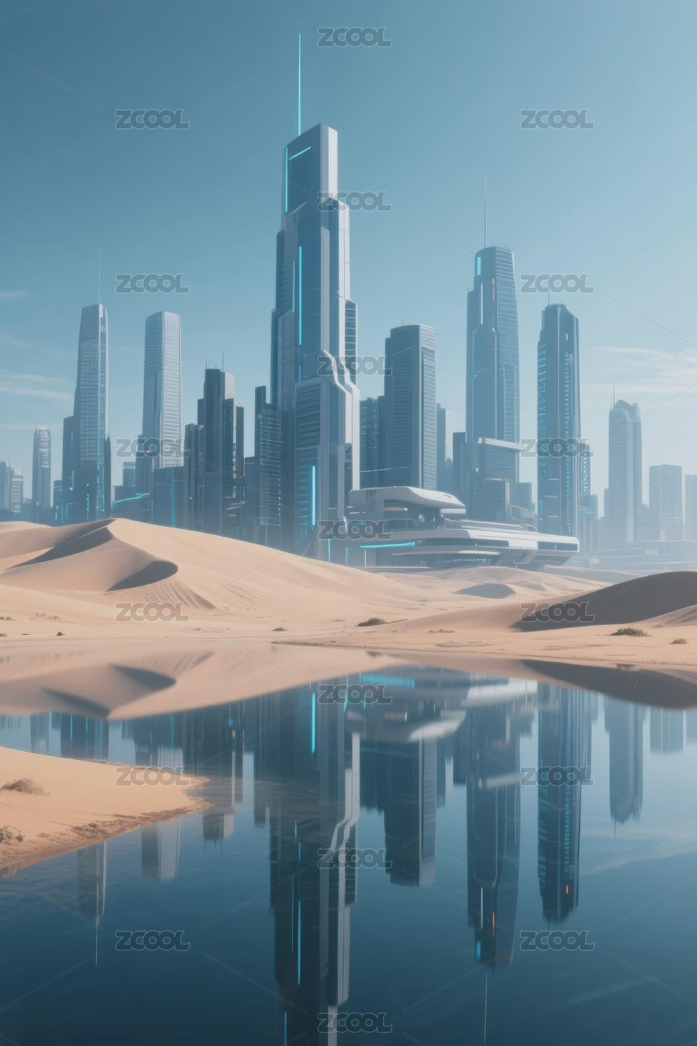 沙漠,城市,建筑,繁华,深处,图像,沙丘,绿洲,高楼,玻璃