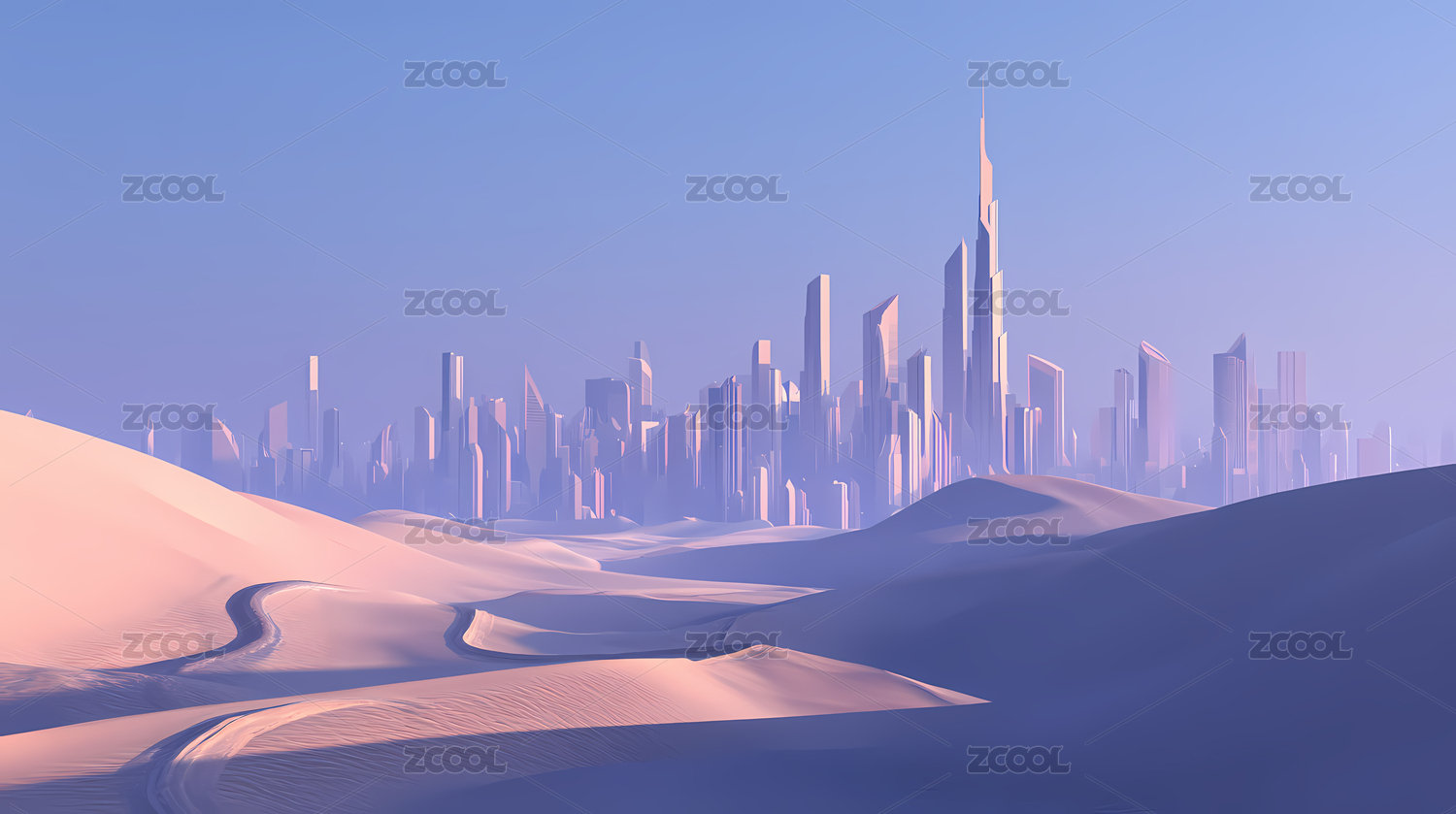沙漠,城市,建筑,繁华,深处,图像,沙丘,绿洲,高楼,玻璃