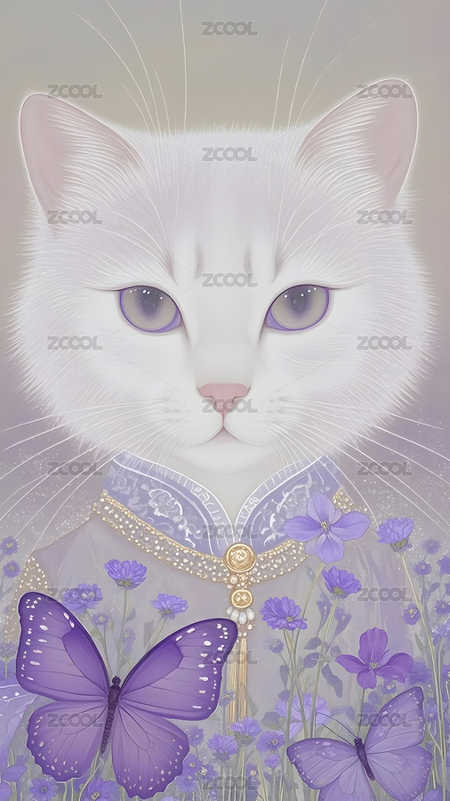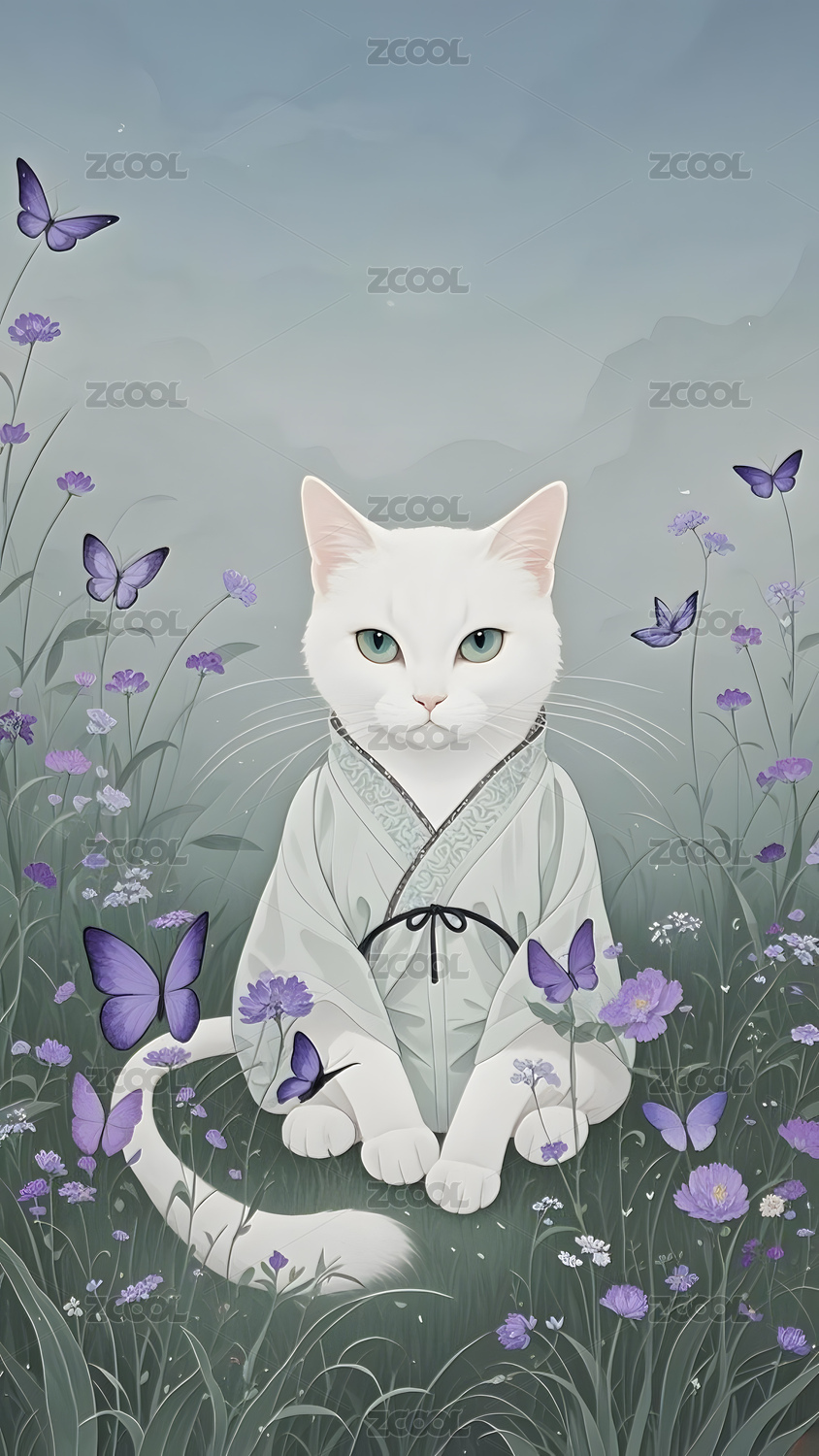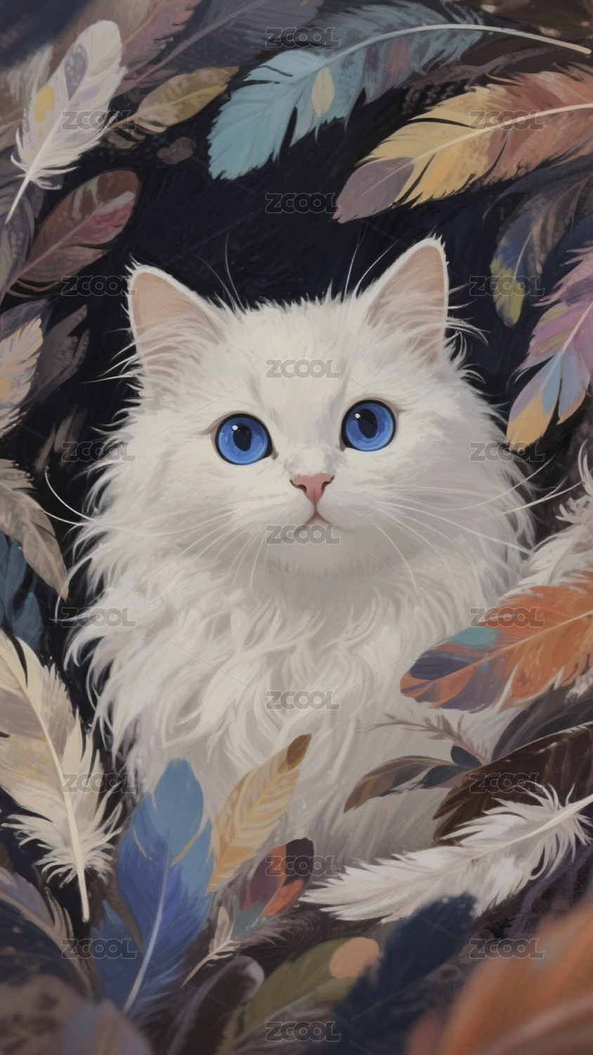 猫,白猫,萌宠,可爱,古风,动物,奇幻,工笔画,漆绘,中式美学