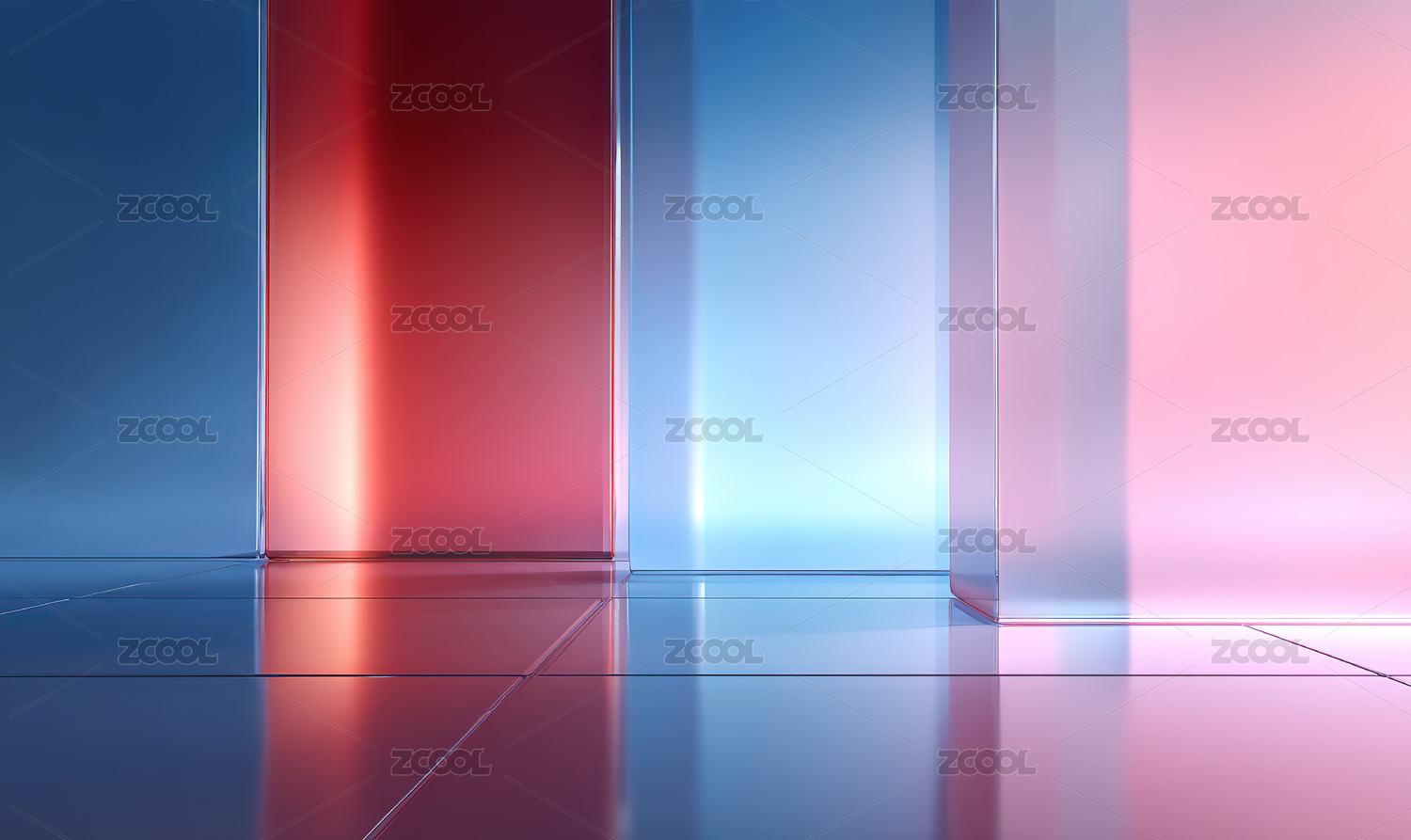 彩色光柱反射地面场景