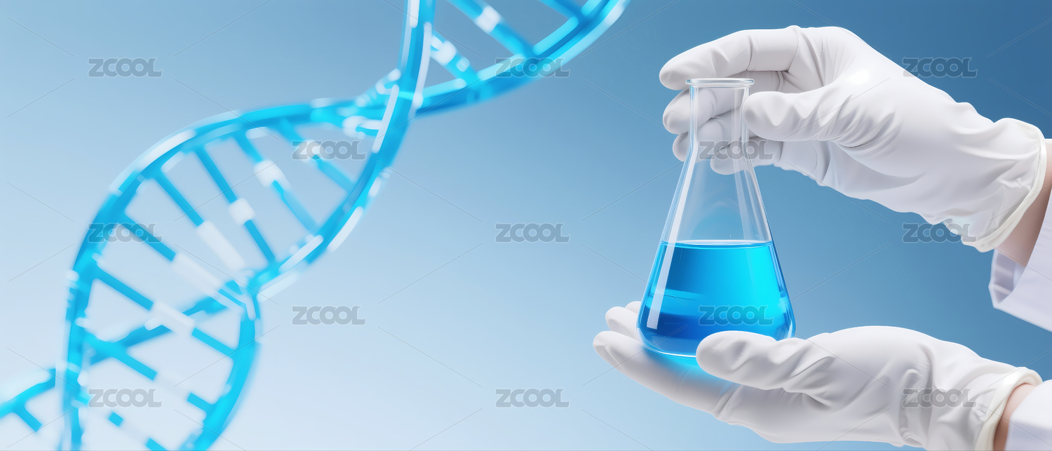 戴手套的手握着盛有蓝色液体的锥形瓶