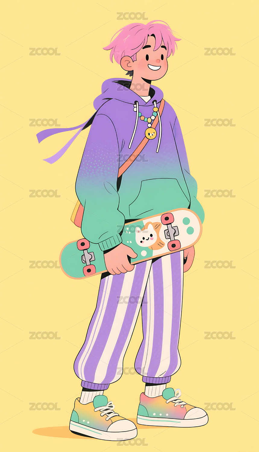 遛狗,漂亮,扁平风格,质感,渐变,时尚,插画,素材,平面,插图