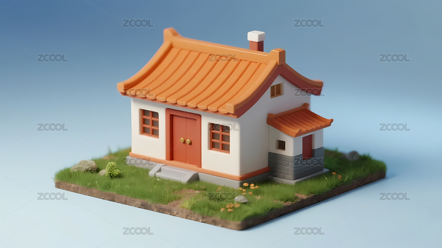 3D,建模,模型,土房,民居,素材,古建筑,卡通