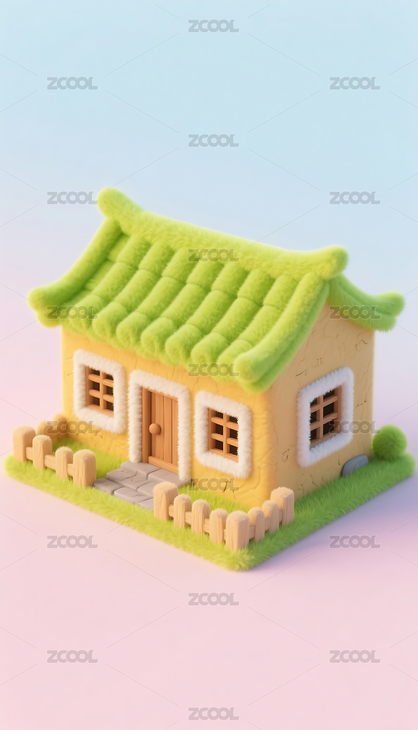 3D建模羊毛毡毛绒绒质感民居土房古建筑