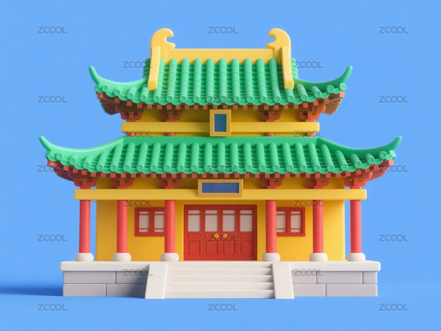 3D,建模,古建筑,模型,素材,卡通,传统,中式